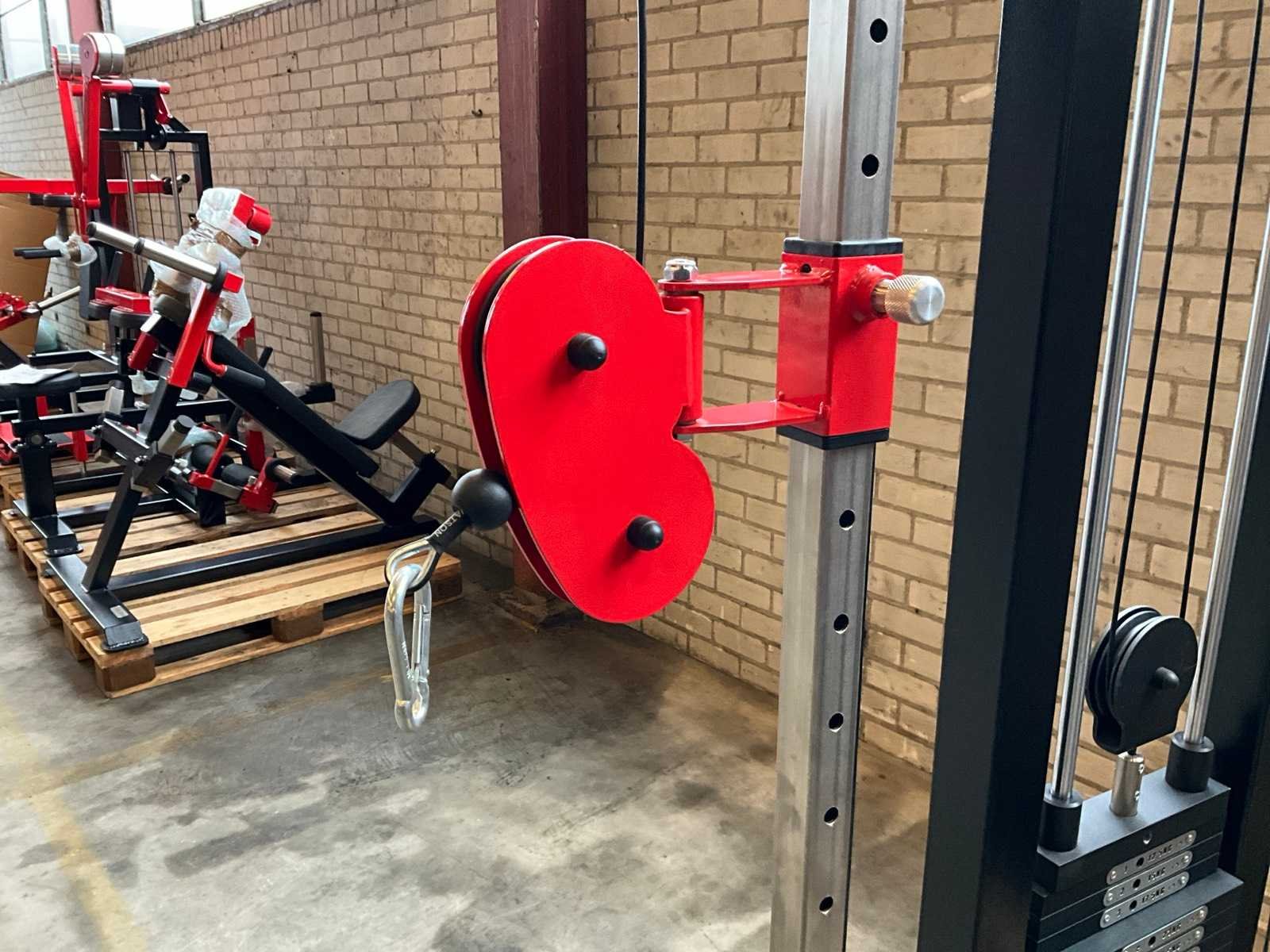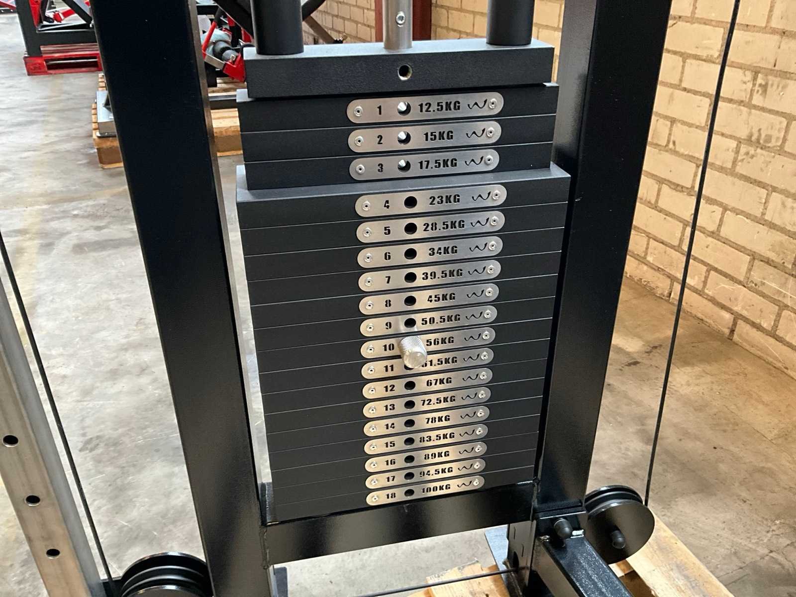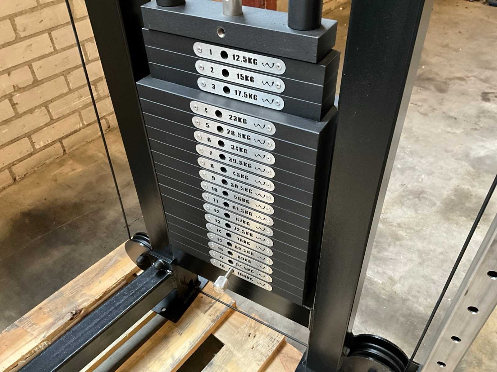 Dubbele 100kg weight stacks. Meerdere chin-up bars. Merk: Watson Lengte: 80cm Breedte: 140cm Hoogte: 240cm