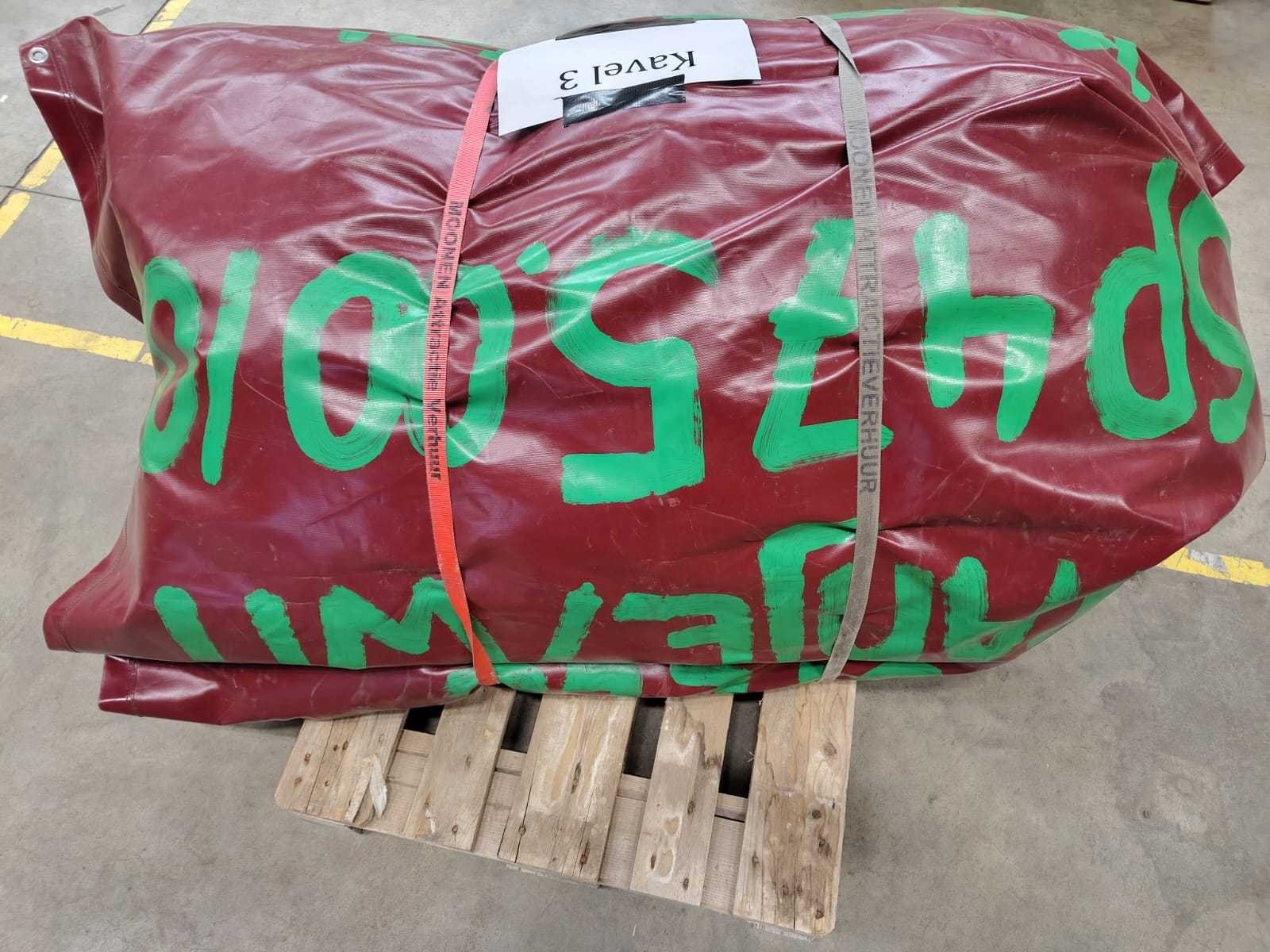 Verkoop is exclusief blowers, haspel, haringen, pallets en spanbanden. Kussen is inclusief geldig certificaat. Lengte: 500cm Breedte: 450cm Hoogte: 400cm