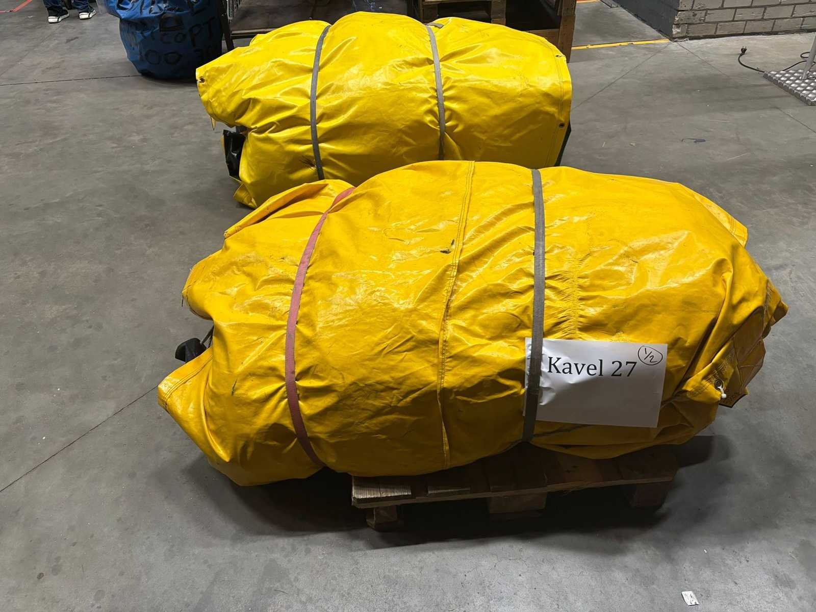 Verkoop exclusief pallet, spanbanden, blower, haspel en voetballen. 2- delig kussen. Lengte: 3000cm Breedte: 1500cm Hoogte: 100cm