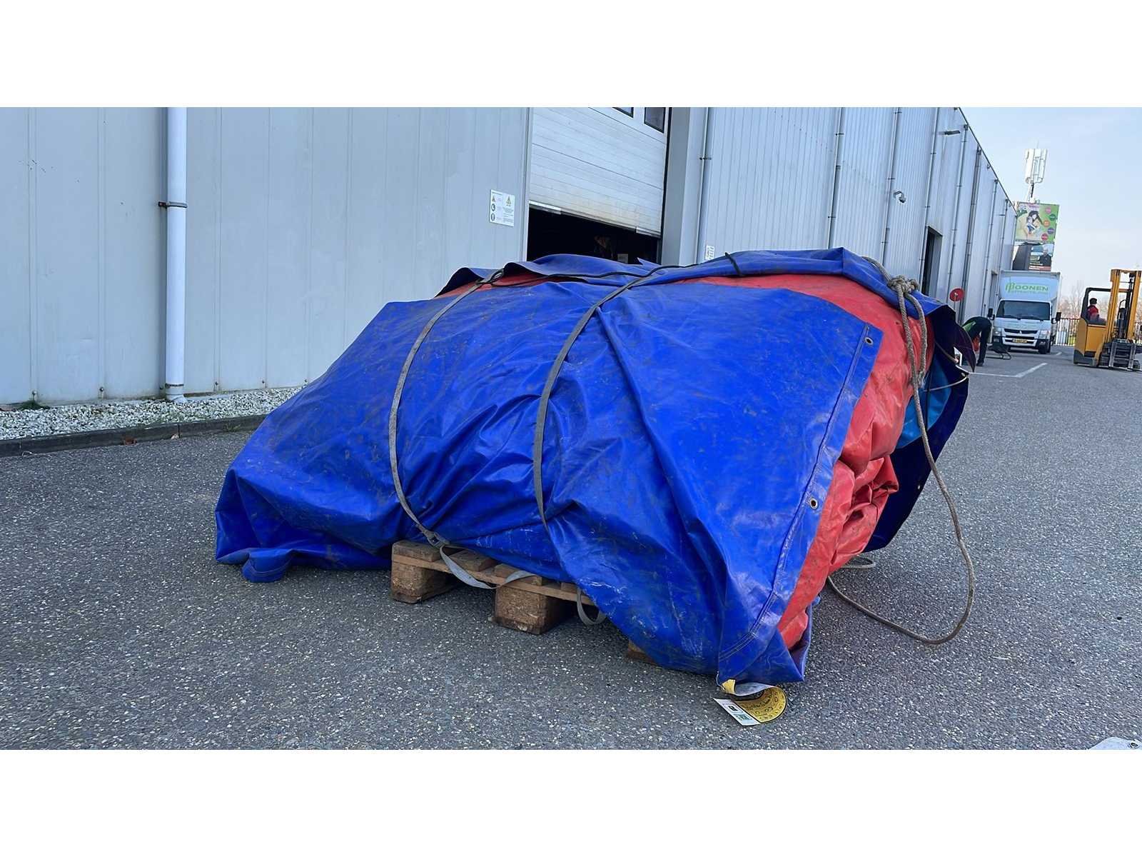 2-delig kussen. Verkoop is exclusief blowers, pallets en spanbanden. Kussen is inclusief geldig certificaat. Lengte: 1500cm Breedte: 550cm Hoogte: 600cm