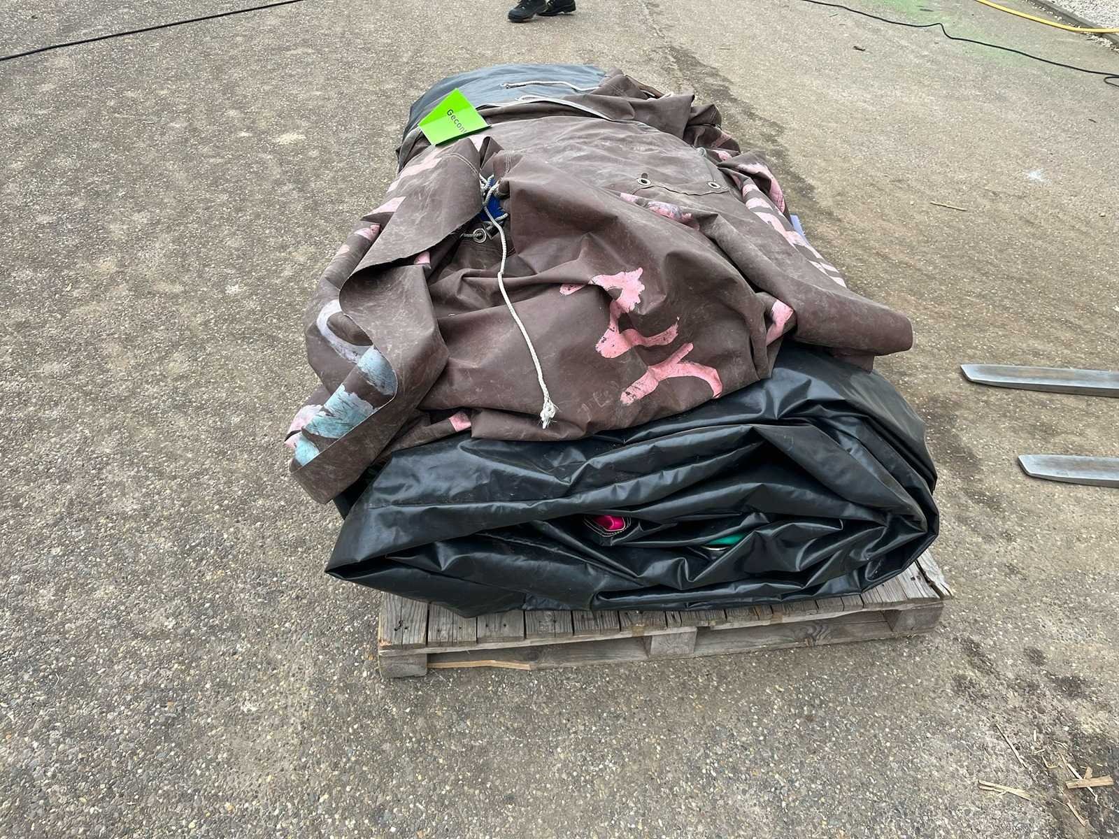 Verkoop exclusief blower, pallet en spanbanden. Verkoop is inclusief de bungee elastieken en tuigjes. Kussen is inclusief geldig certificaat. Lengte: 1000cm Breedte: 400cm Hoogte: 300cm
