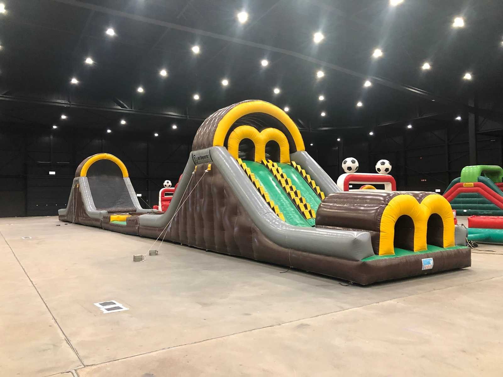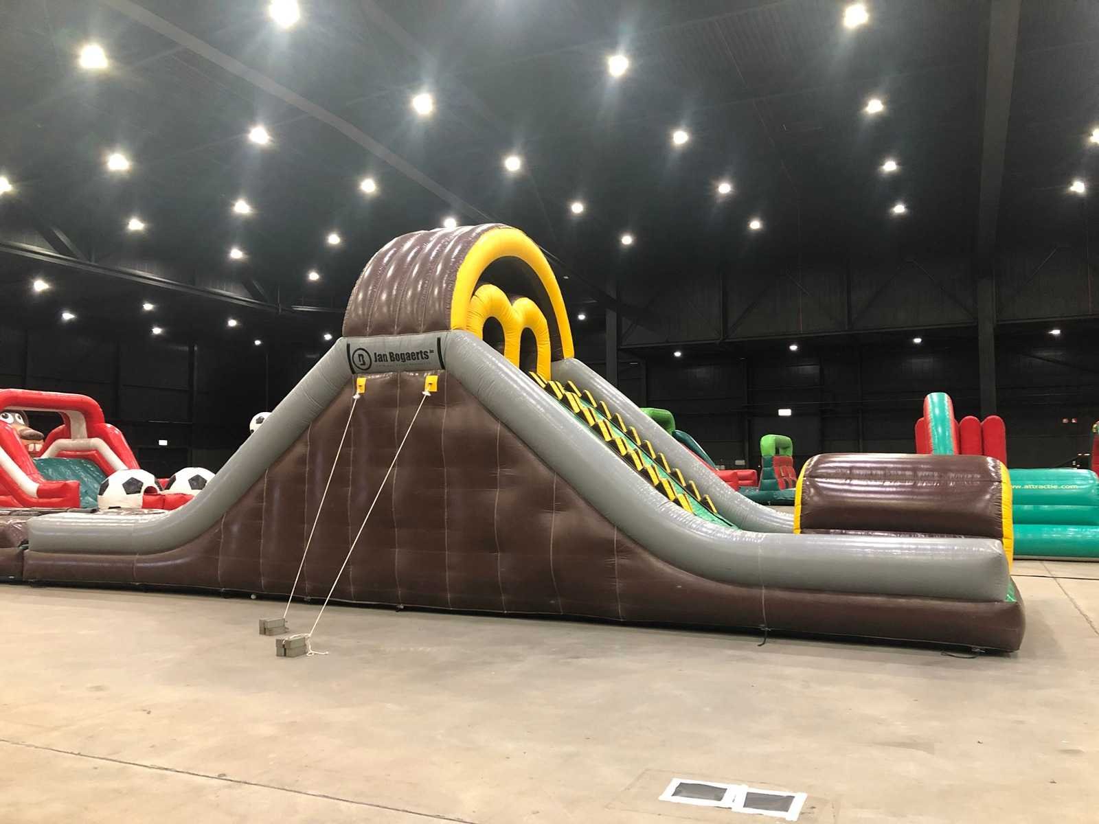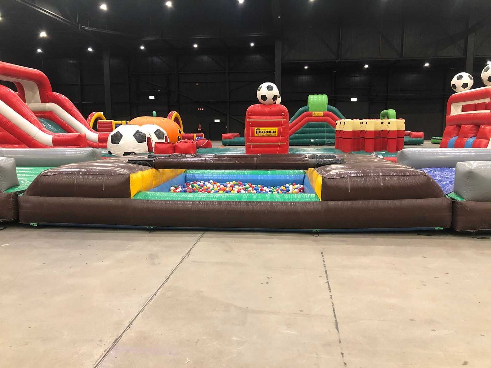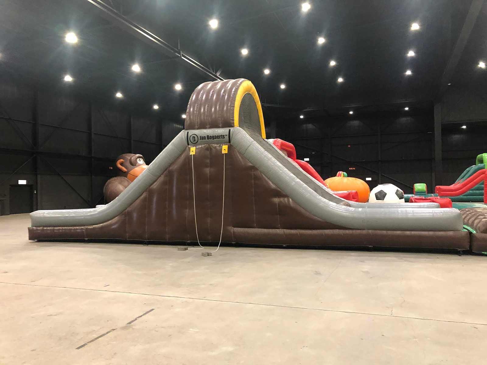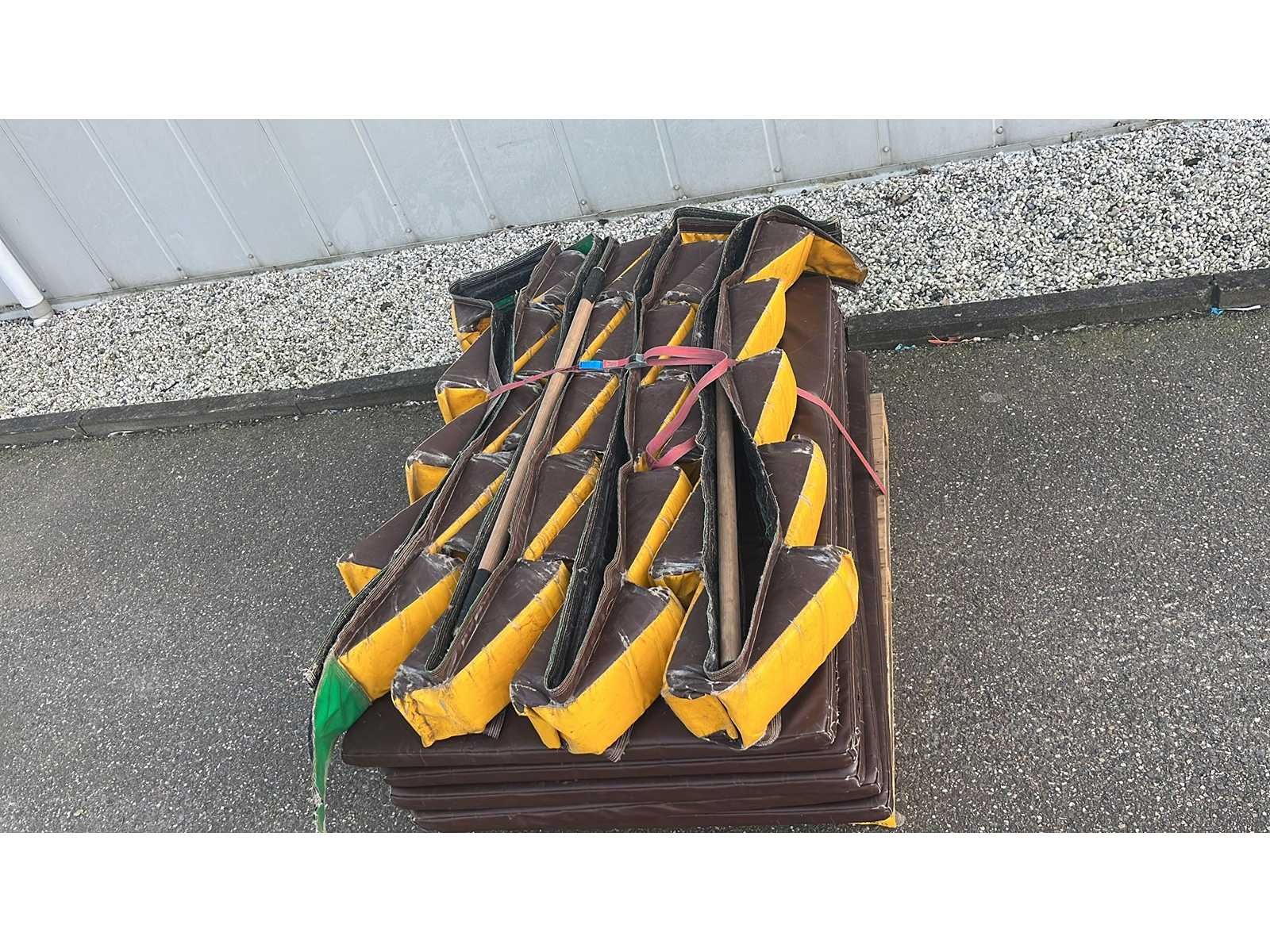 3-delig kussen. Inclusief alle onderdelen. Verkoop exclusief pallets en blowers. Kussen is inclusief geldig certificaat. Lengte: 3100cm Breedte: 420cm Hoogte: 510cm