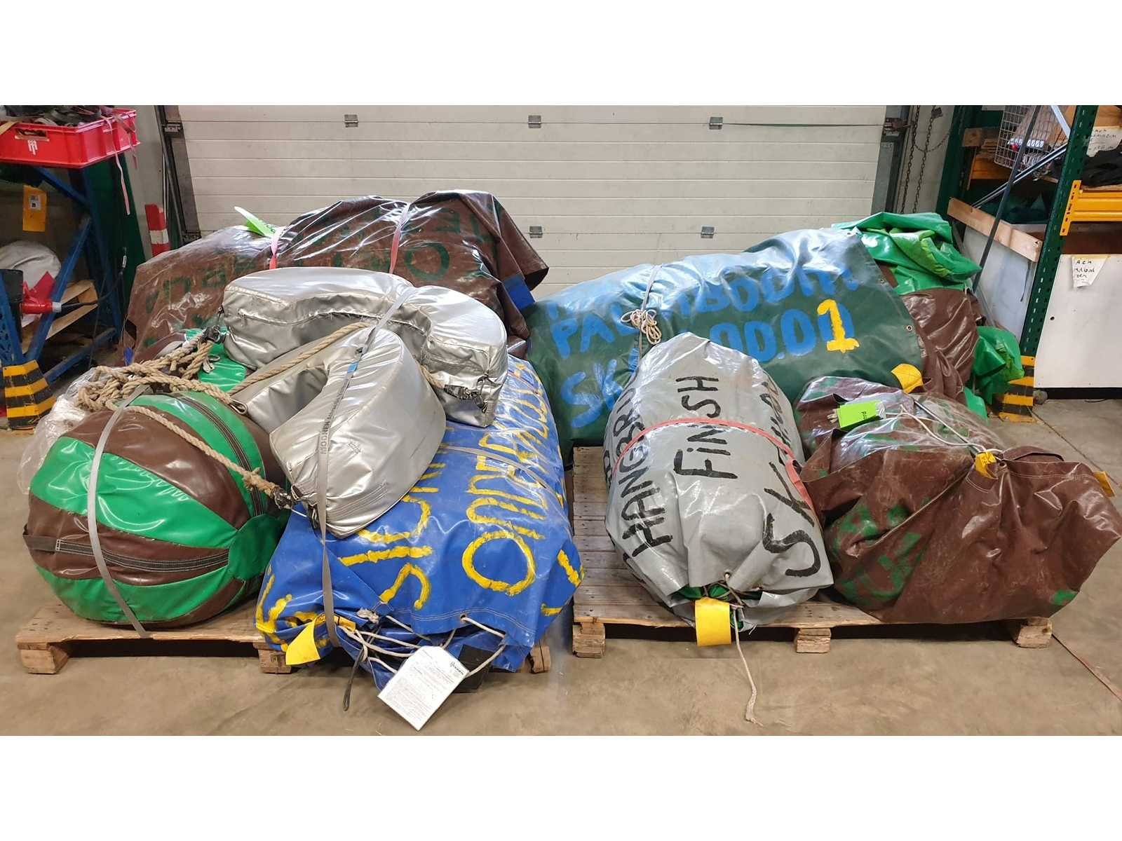 Verkoop exclusief pallet, blower, haspel en spanbanden. Kussen is inclusief geldig certificaat. Lengte: 2900cm Breedte: 680cm Hoogte: 600cm