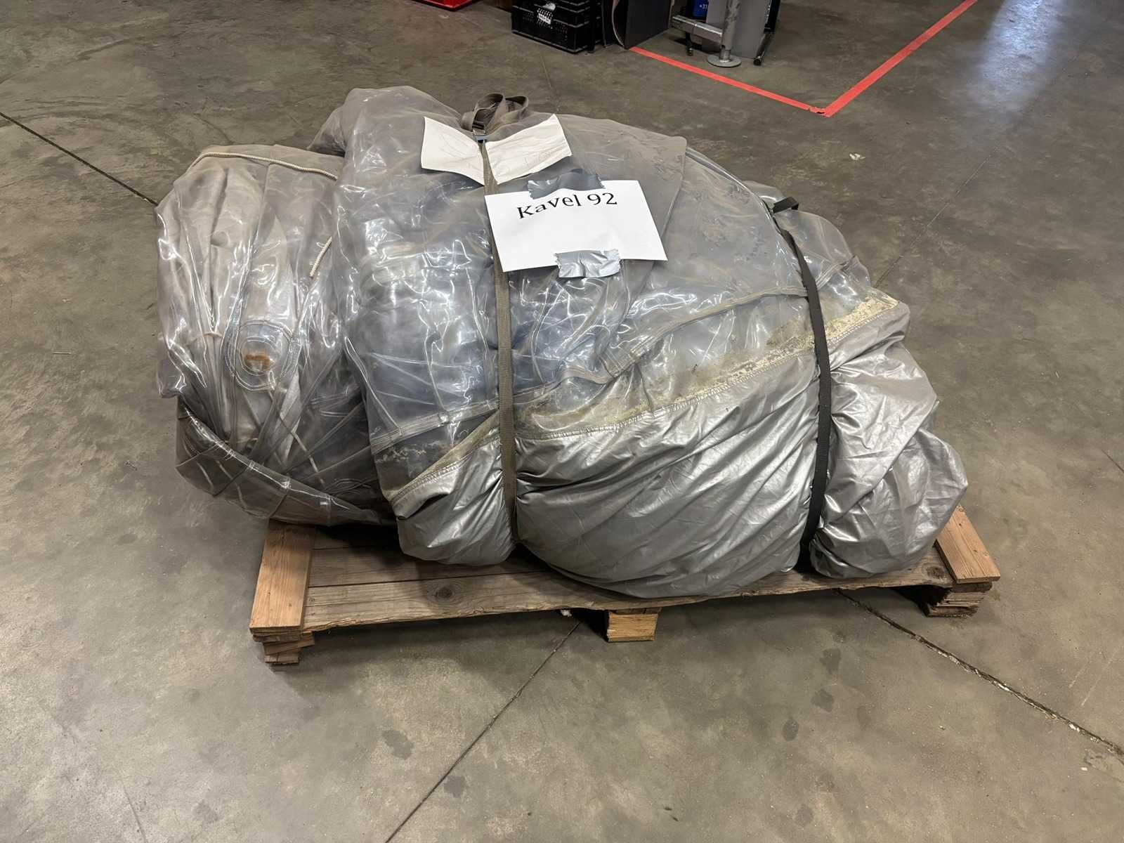 Verkoop exclusief blower, pallet en spanbanden. Lengte: 750cm Breedte: 750cm Hoogte: 250cm