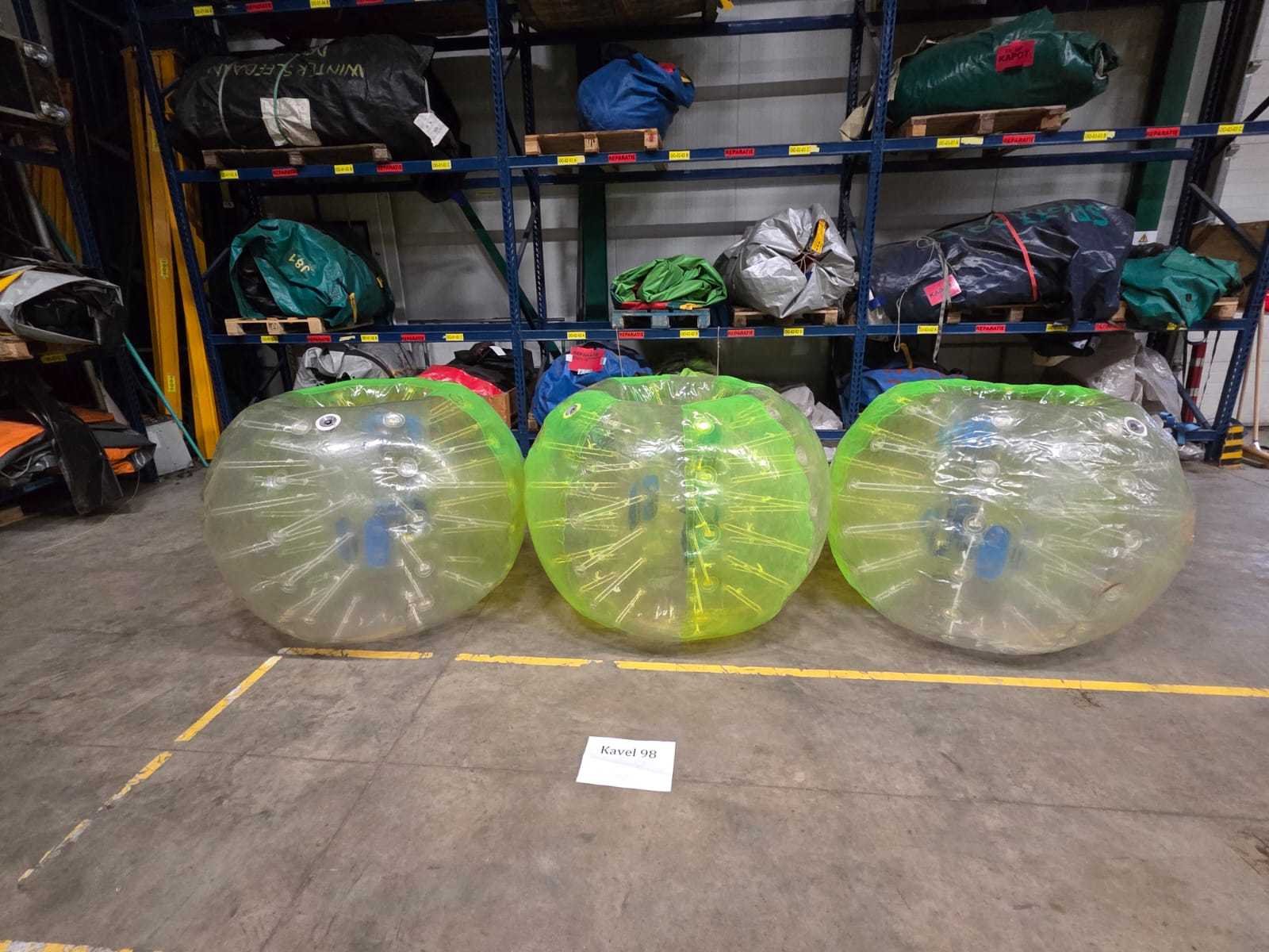 Bouncing bubbels geel set van 3 Ze zijn gebruikt en ze lopen langzaam leeg Ø1.5m Bij gebruik moet je ze af en toe extra opblazen. Verkoop is exclusief, pallet, spanbanden, blower/fohntje om op te blazen. Lengte: 150cm Breedte: 150cm Hoogte: 150cm