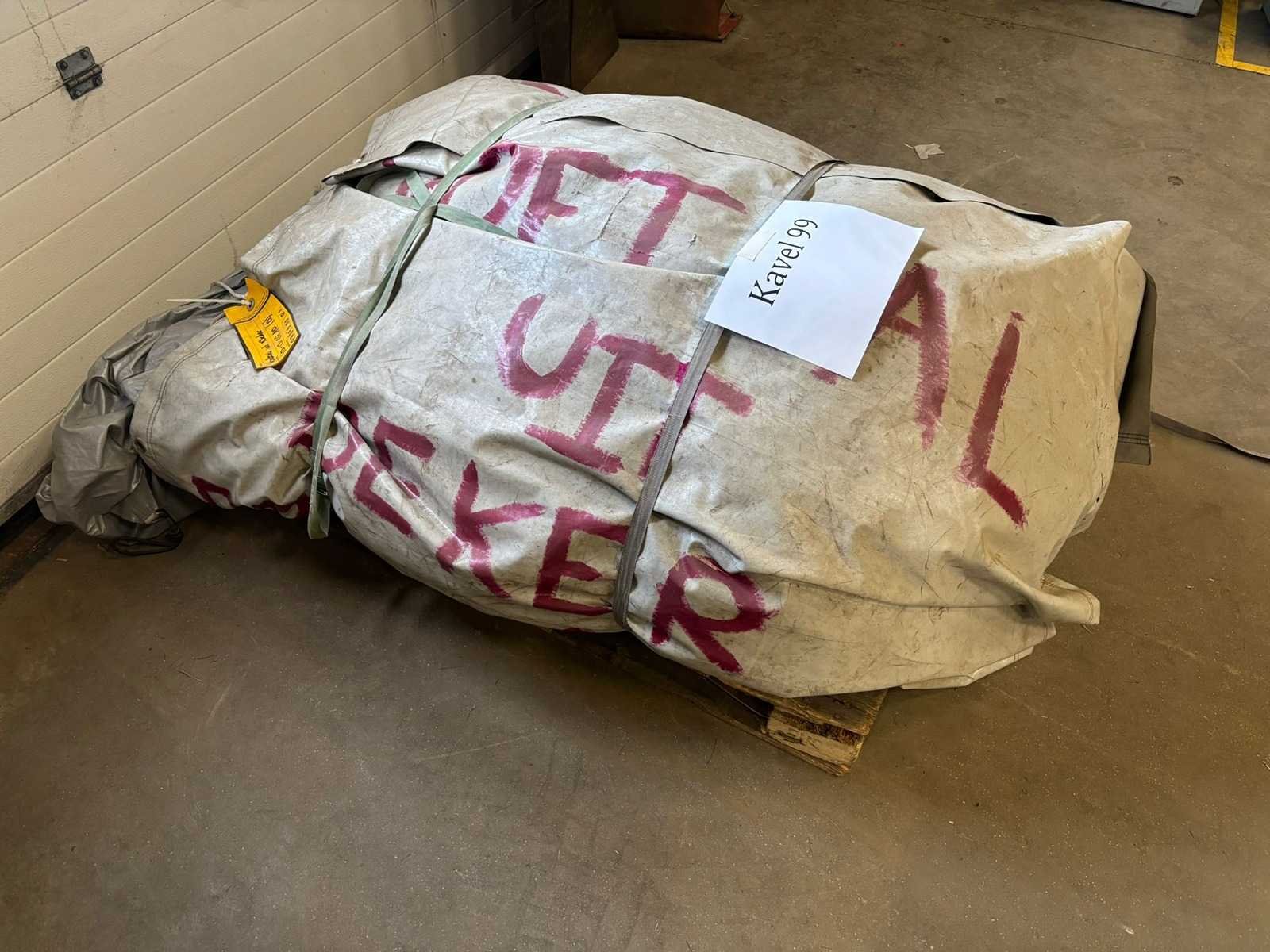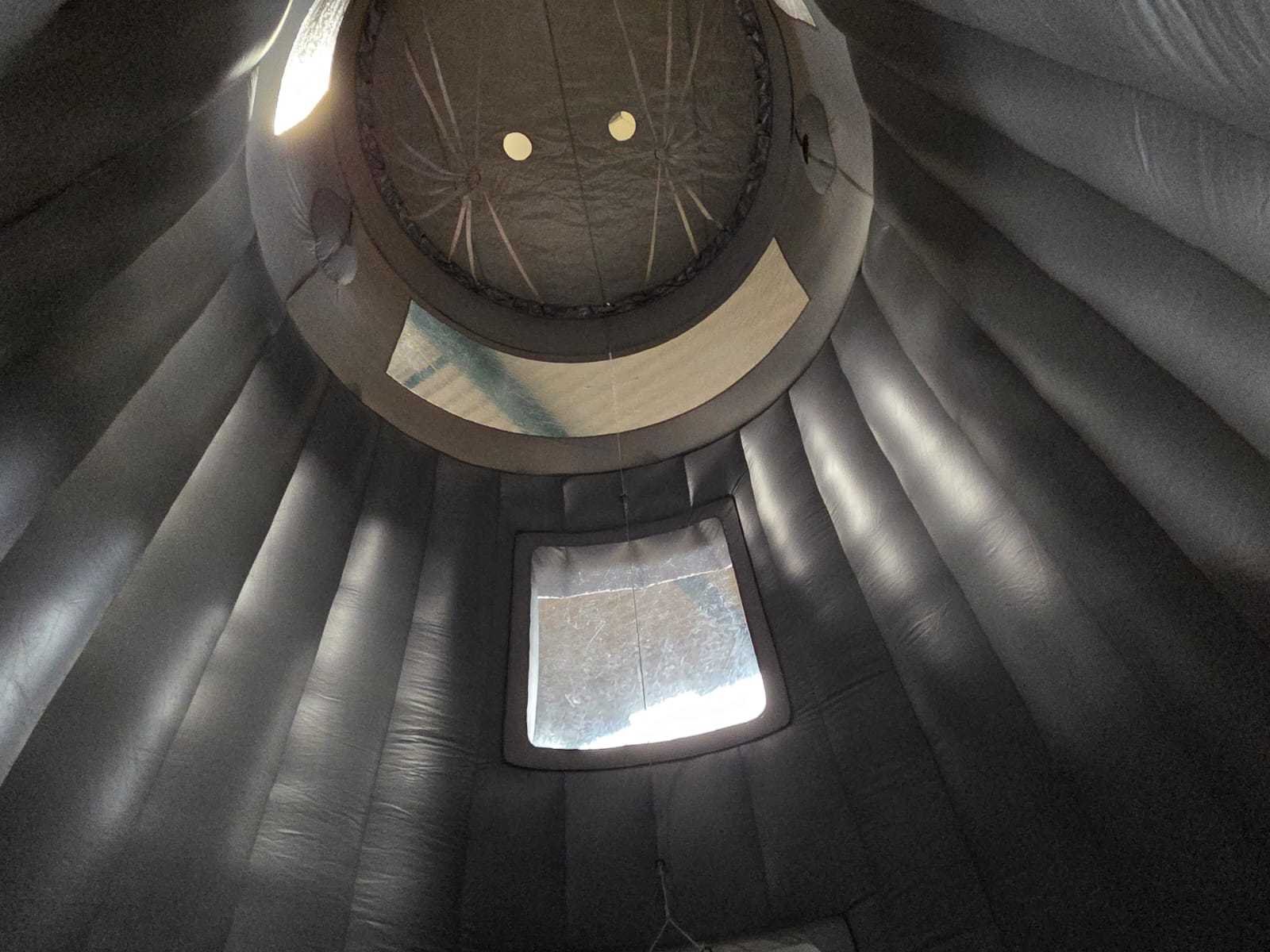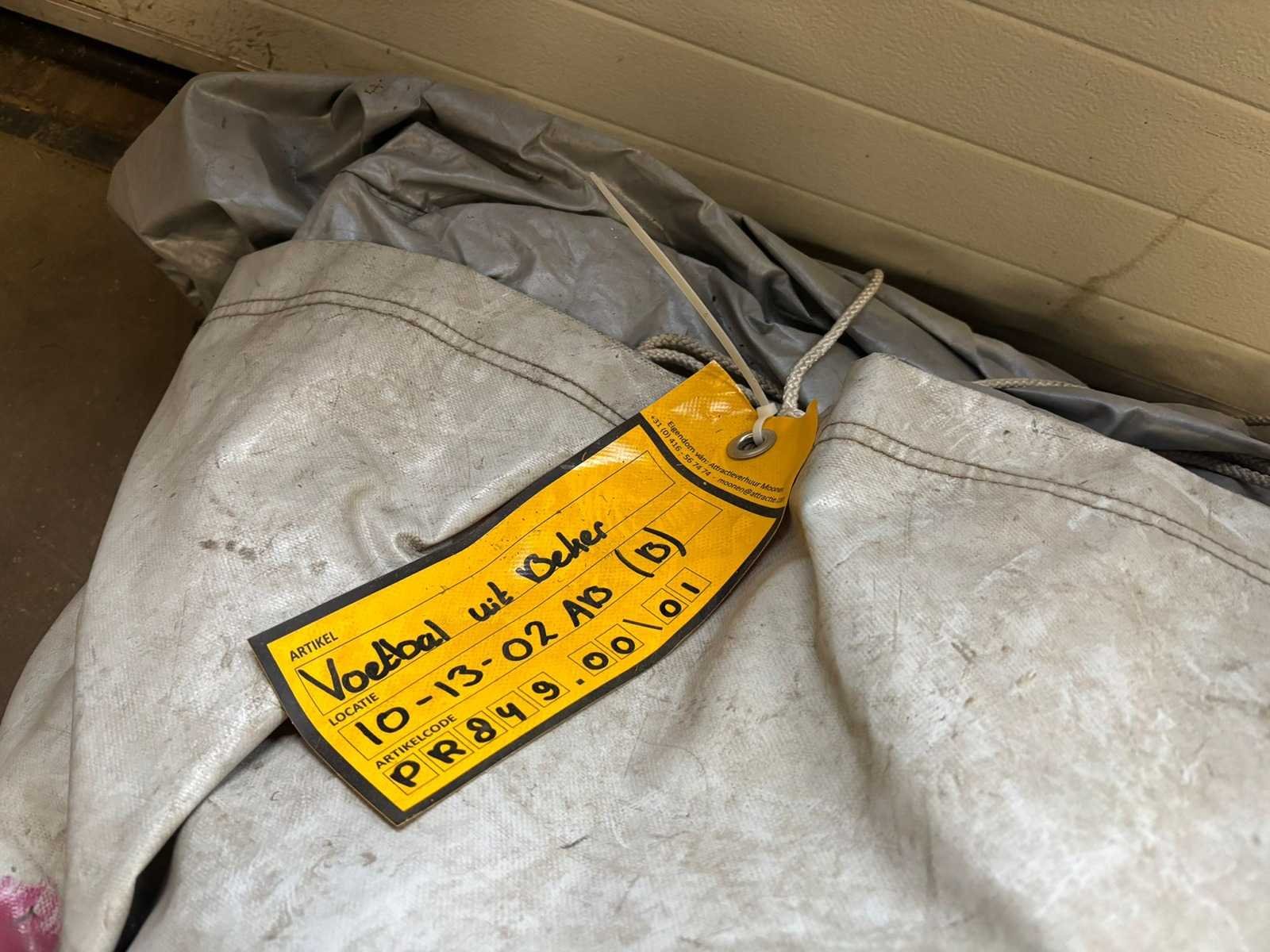 Verkoop exclusief blowers, voetballen, pallet en spanbanden. Lengte: 580cm Breedte: 580cm Hoogte: 650cm