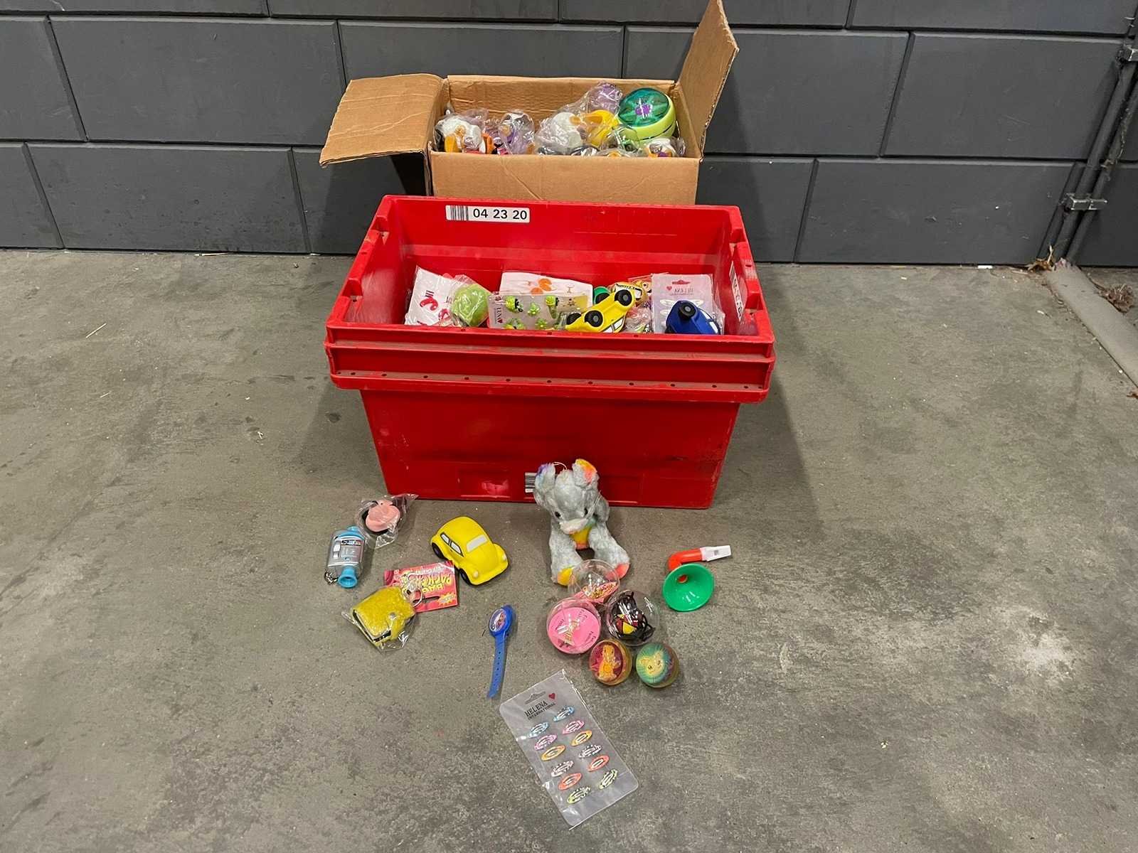 1x Krat en 1x Doos vol grabbeltonprijsjes. Verkoop is inclusief krat en doos. Diverse afmetingen.