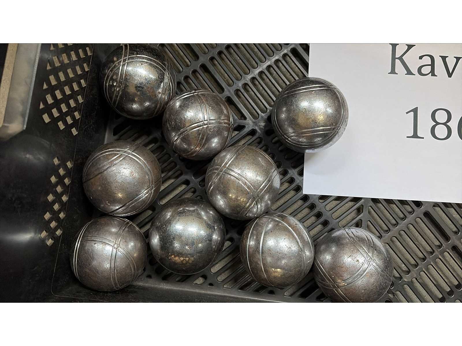 Krat met 9 jeu de Boule ballen. Verkoop inclusief krat