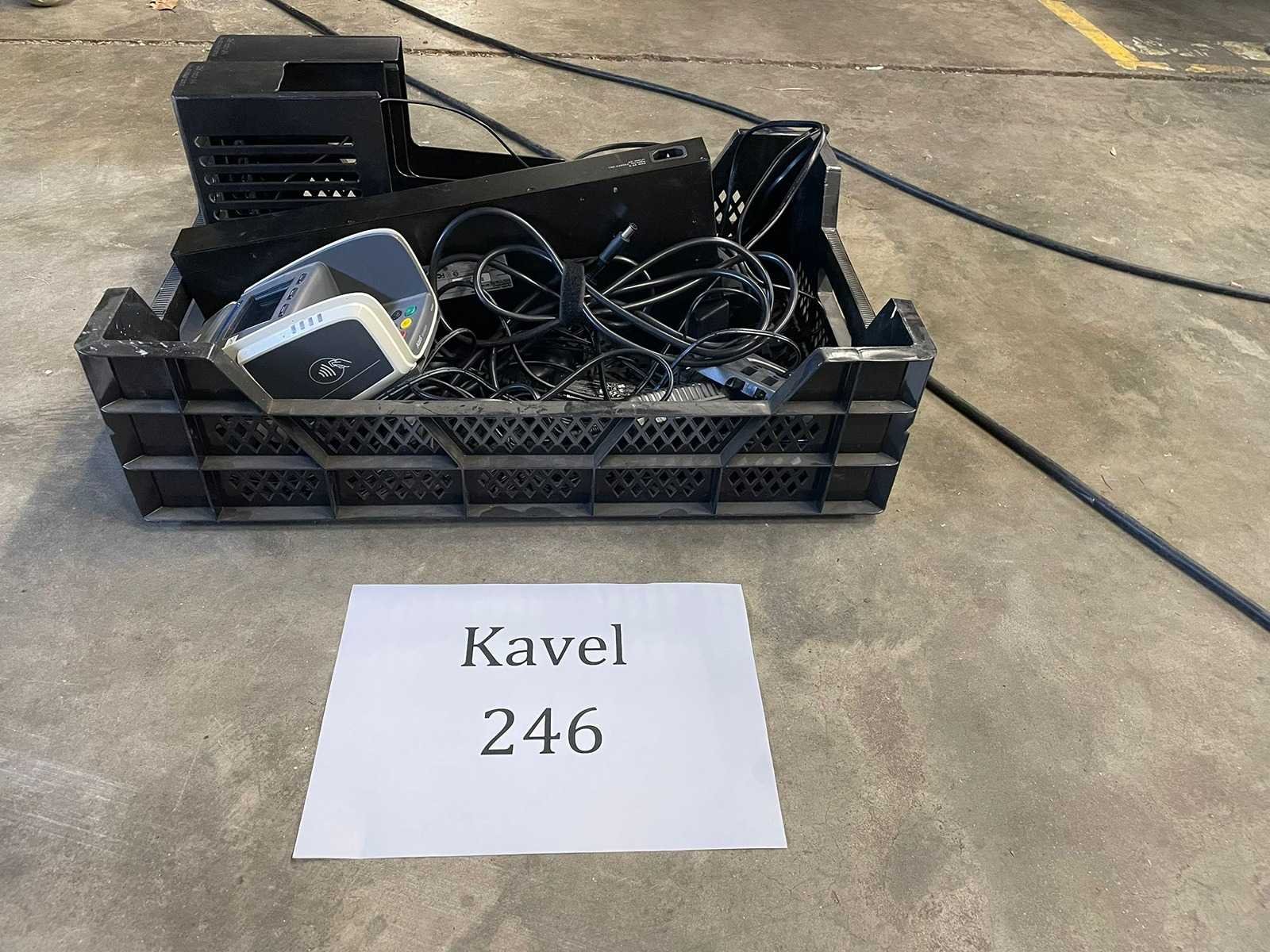 Kabels en overige kantoor spullen Verkoop exclusief krat. Afmetingen bak L:60 B: 40 H: 17 Lengte: 60cm Breedte: 40cm Hoogte: 17cm
