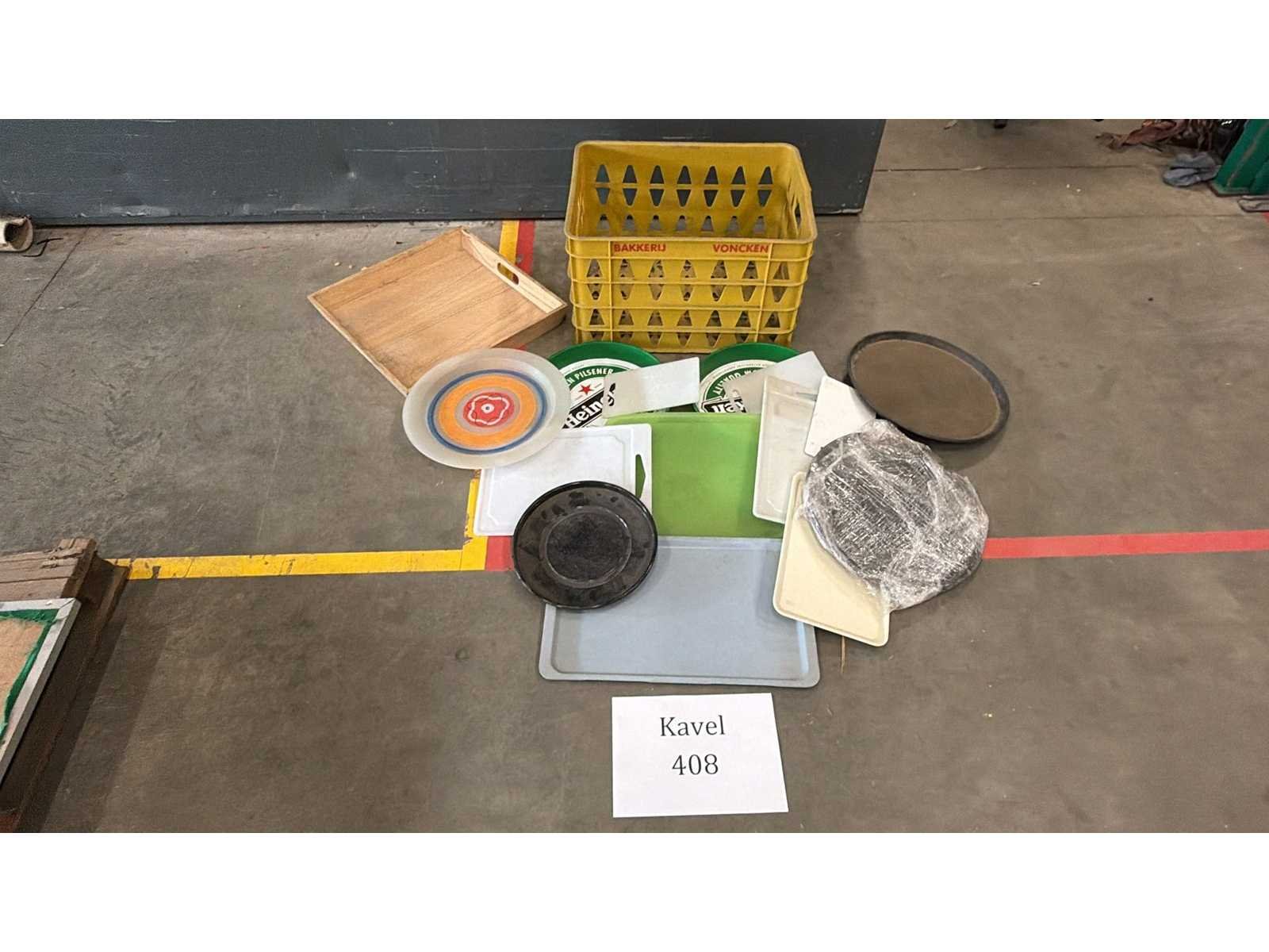 Krat met dienbladen