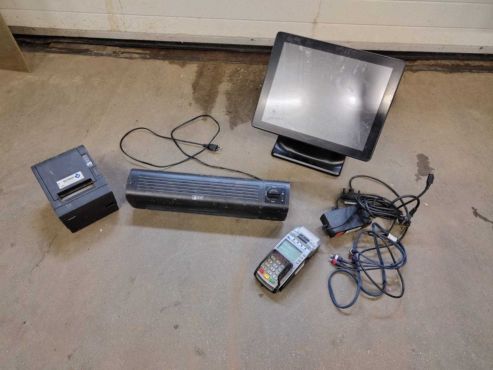Diverse. Lamineermachine, pinapparaat, scherm. Inclusief krat.