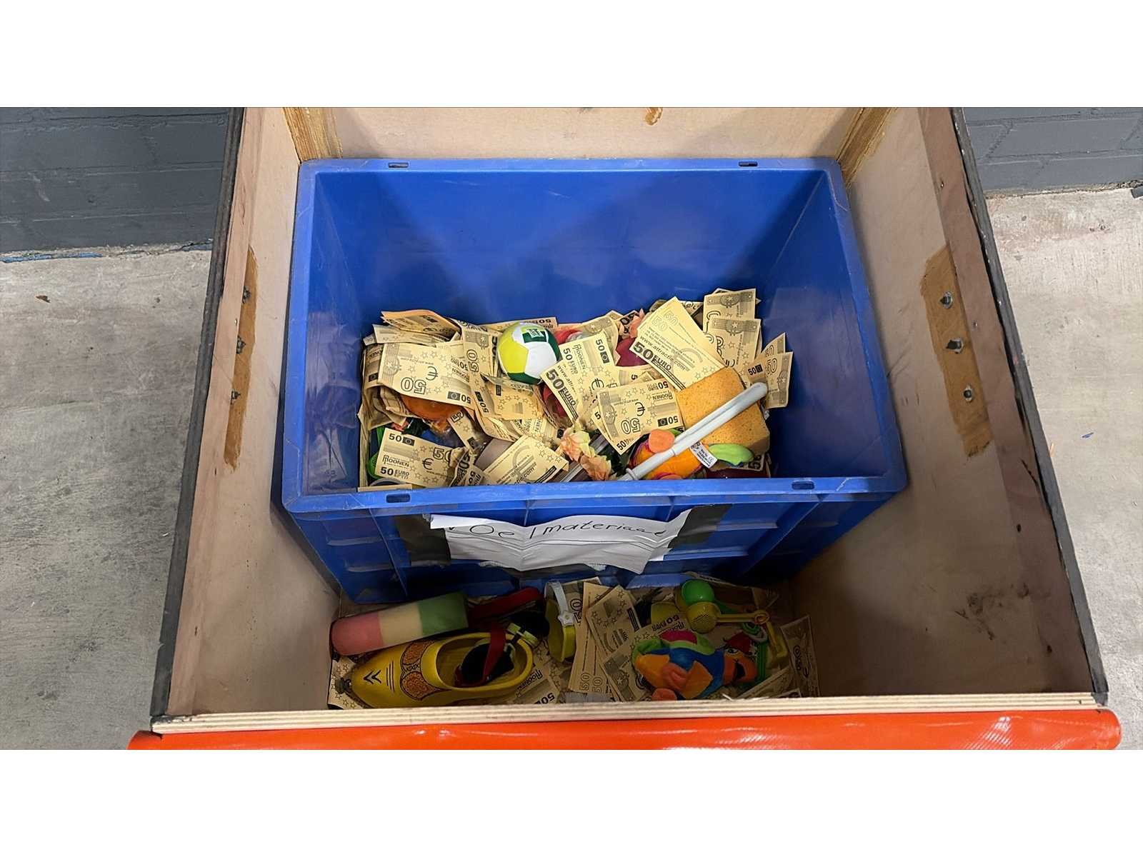 Spel / grabbelton inclusief voel materialen. Verkoop exclusief krat. Lengte: 63cm Breedte: 63cm Hoogte: 63cm
