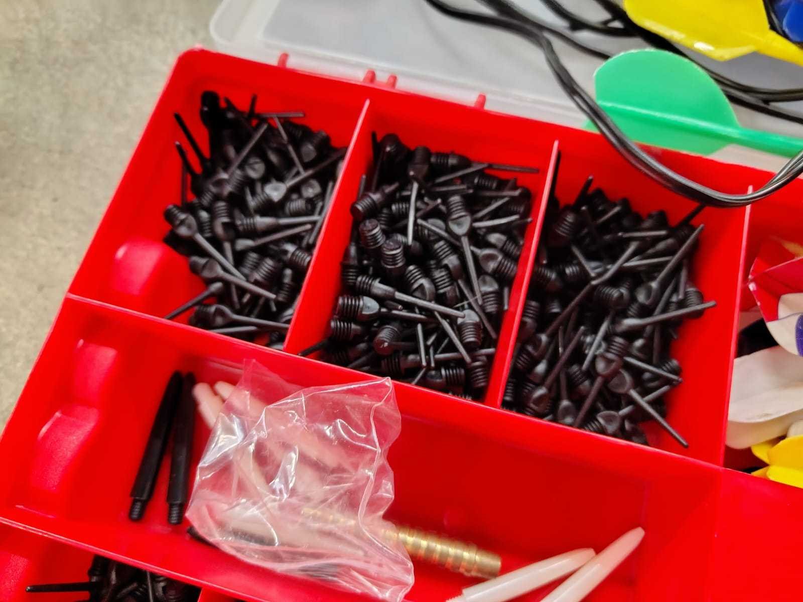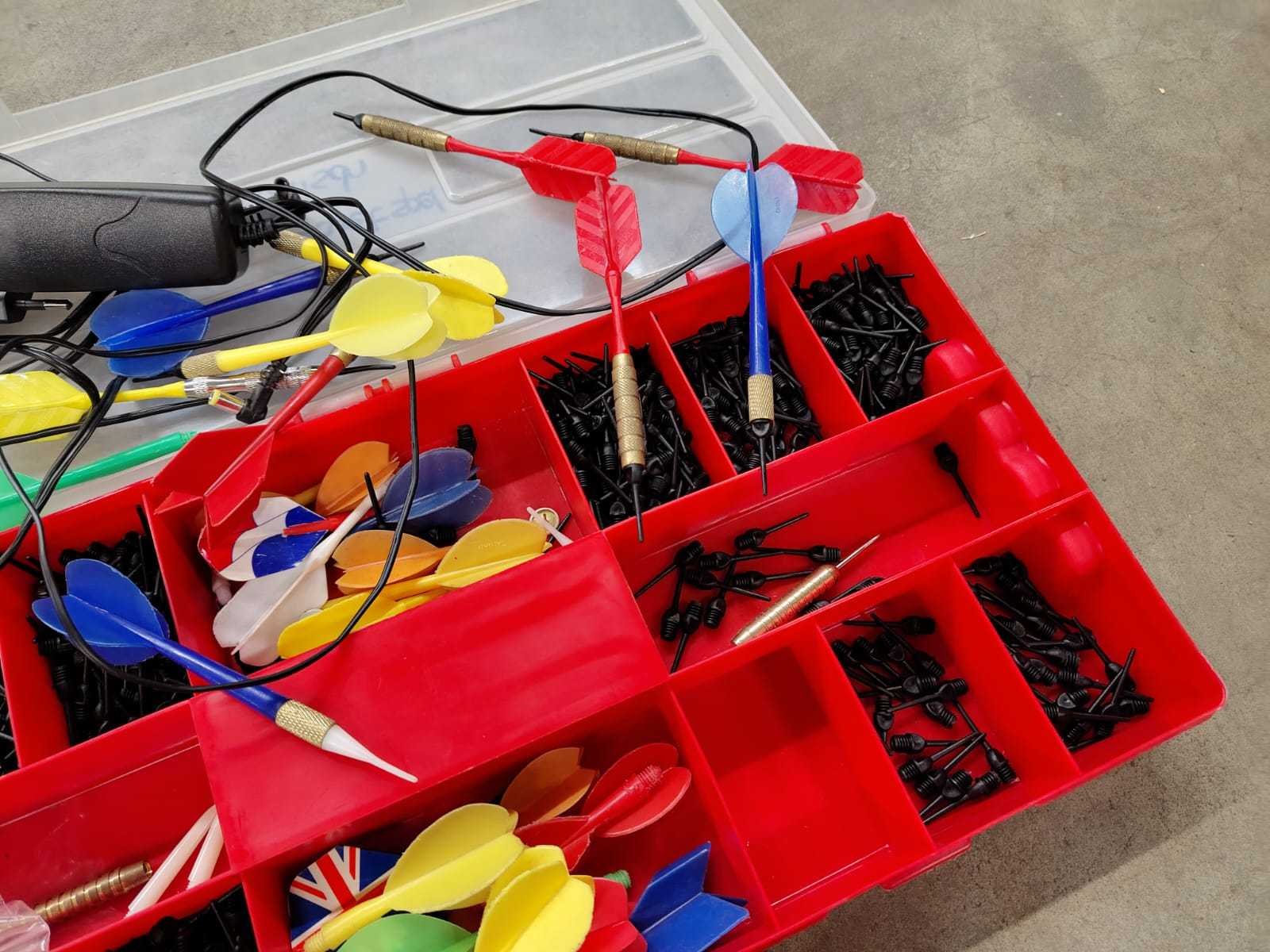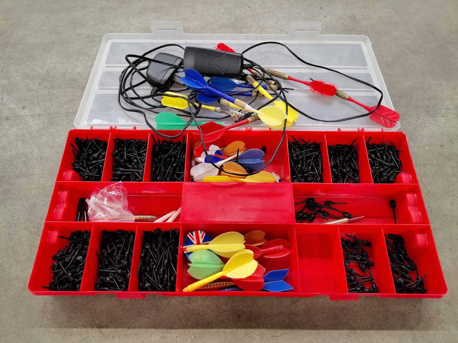4x dartbord electronisch 2x groen achterpaneel 1x standaard 1x rode bak met pijltjes en onderdelen. Verkoop exclusief pallet en spanbanden. Lengte: 5cm Breedte: 50cm Hoogte: 60cm