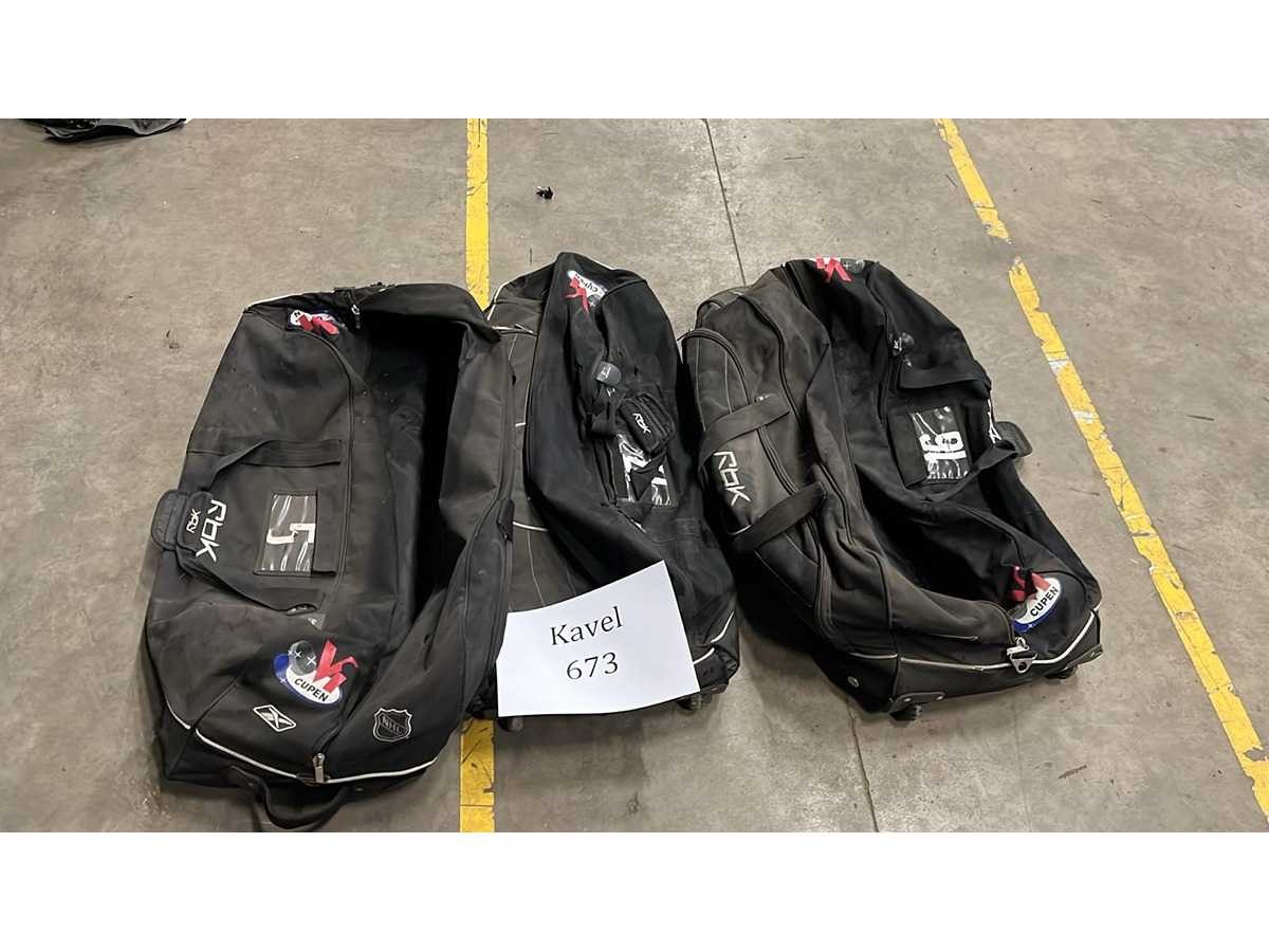 3 x lege ijshockeytas. Lengte: 45cm Breedte: 93cm Hoogte: 40cm