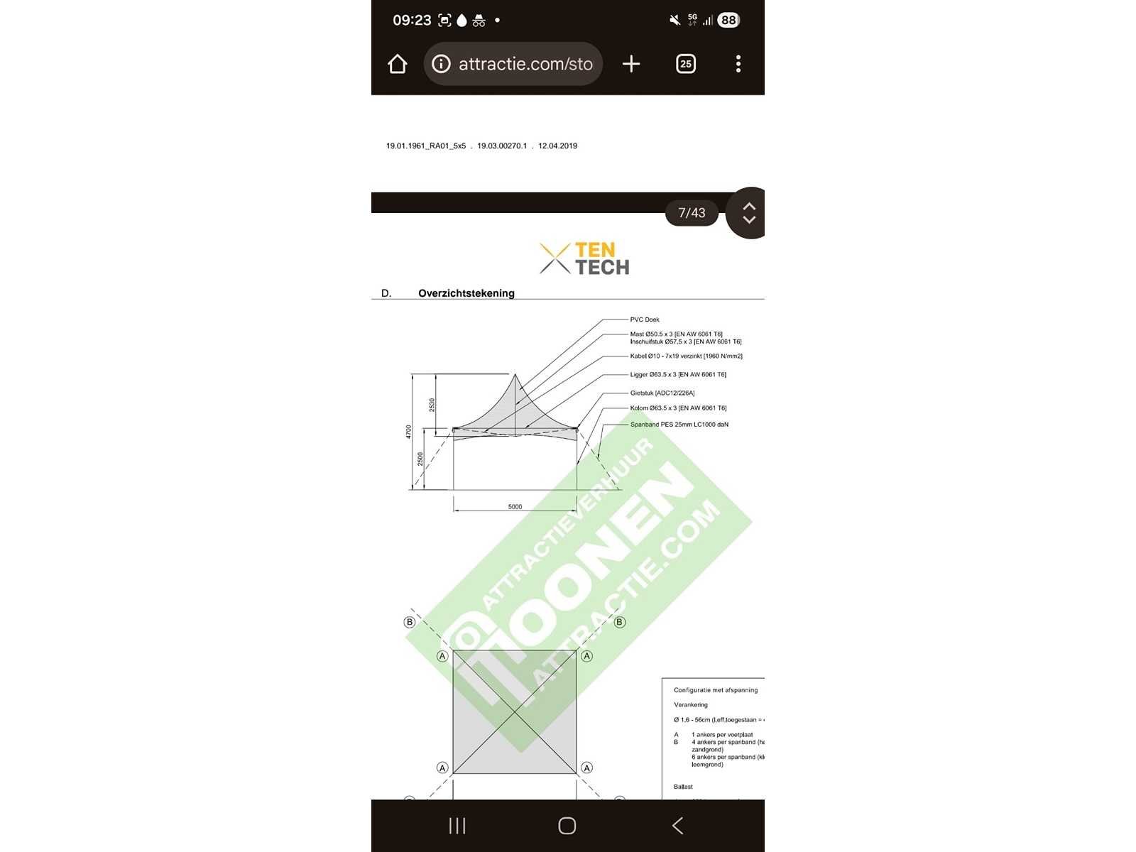 Pagode tent , 2x zijkant raam, 2x zijkant dicht 1x dak zijkanten 250x500 dak 253x500 cm Lengte: 250cm Breedte: 500cm