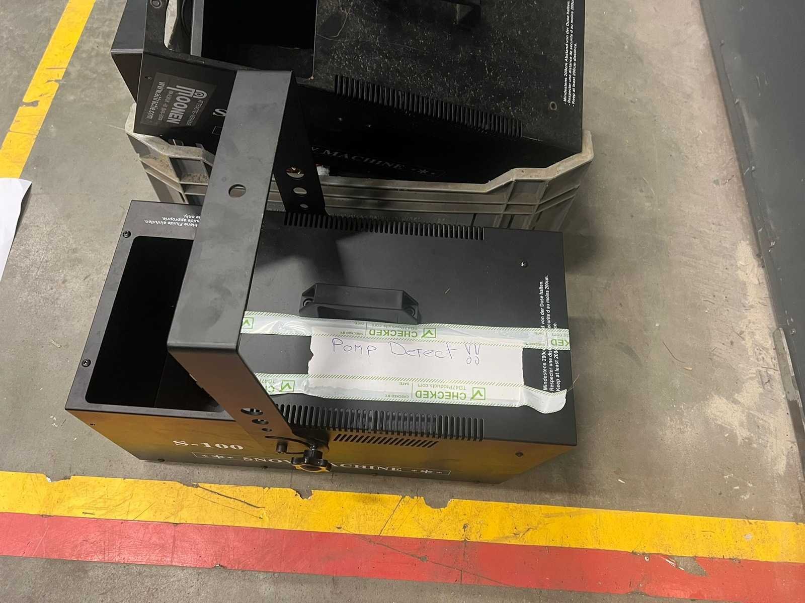 Snow machine defect en onderdelen Verkoop inclusief krat. Lengte: 40cm Breedte: 52cm Hoogte: 27cm