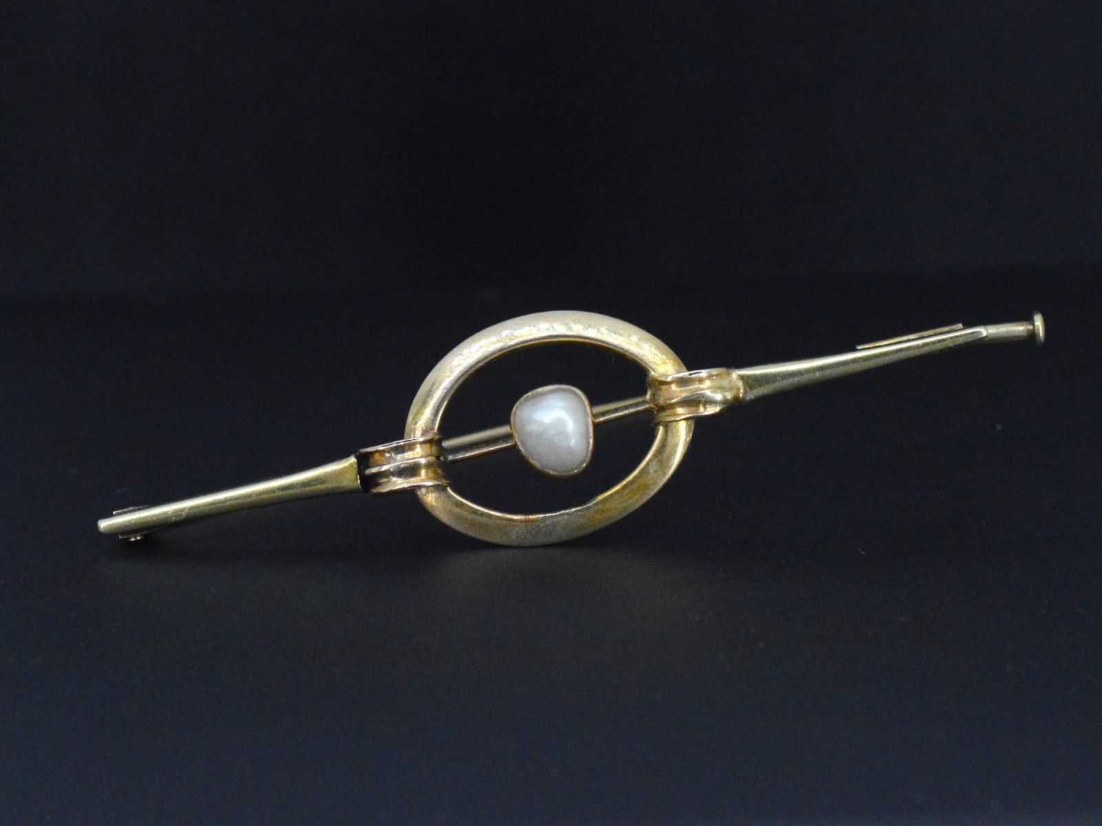 Samenvatting van gegevens Gouden broche met orient parel Parel: Orient parel; Juweel: Broche; Gewicht: 3 gram; Afmetingen/lengte: 60 mm; Materiaal: 14k goud (585); Conditie: Vintage; Verpakking: Luxe sieradendoos; Toelichting: De kwaliteit is overgenomen van het rapport behorend bij item. De waardebepaling is een beoordeling van een gecertificeerde diamantair, gebaseerd op consumentenprijzen.; Consumentenprijs: € 3.800,- Within 14 days Materiaal: Goud Totaal gewicht: 3g Keurmerk: 585 Lage schatting: 3040€ Hoge schatting: 3800€