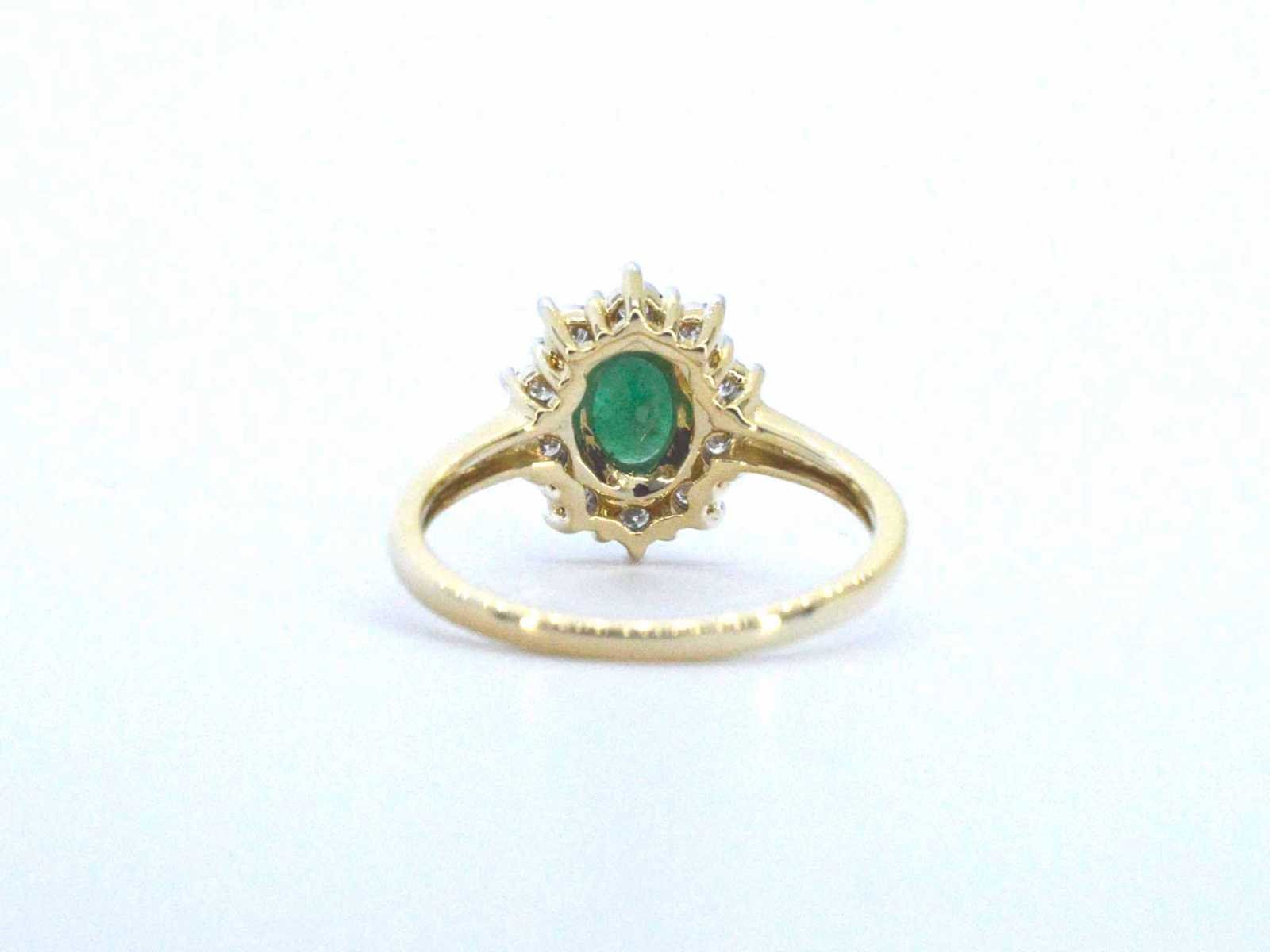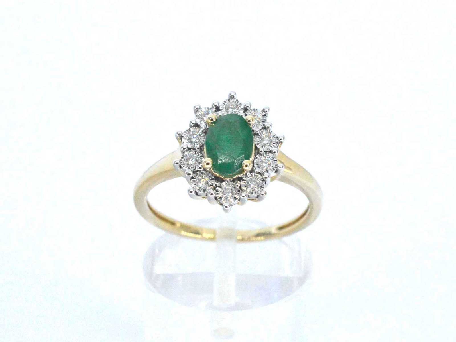 Samenvatting van gegevens Gouden ring met een groene ovale smaragd en natuurlijke diamanten Diamant: Natuurlijk; Aantal: 10 stuks; Slijpvorm: Briljant geslepen; Gewicht (carat): 0.15 carat; Kleur: F-G; Zuiverheid: SI-P; Slijpkwaliteit: Zeer mooi; Edelsteen: Smaragd; Aantal: 1 stuk; Slijpvorm: Ovaal geslepen; Gewicht (carat): 1.00 carat; Kleur: Smaragd groen; Zuiverheid: Met natuurlijke insluitsels; Juweel: Ring; Gewicht: 3 gram; Ringmaat (op maat gemaakt*): 54 (17.25 mm); Materiaal: 14k goud (585); Conditie: Nieuw; Verpakking: Luxe sieradendoos; Toelichting: De kwaliteit is overgenomen van het rapport behorend bij item. De waardebepaling is een beoordeling van een gecertificeerde diamantair, gebaseerd op consumentenprijzen.; Consumentenprijs: € 1.890,- Within 14 days Materiaal: Goud Voornaamste diamant: Natuurlijk Gewicht diamant: 0.15ct Edelsteen: Smaragd Totaal gewicht: 3g Keurmerk: 585 Lage schatting: 1512€ Hoge schatting: 1890€ Kleur diamant: F-G Slijpvorm diamant: Briljant geslepen Slijpkwaliteit diamant: Zeer mooi Zuiverheidsgraad diamant: SI-P Kleur edelsteen: Smaragd groen Slijpvorm edelsteen: Ovaal geslepen Zuiverheidsgraad edelsteen: Met natuurlijke insluitsels