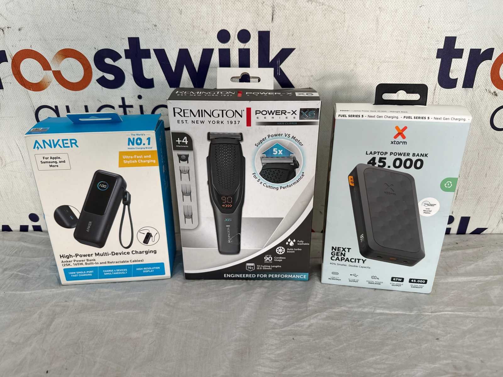 Dit kavel is afkomstig van een grote retailer. De retourgoederen zijn te gebruiken voor onderdelen en er kunnen accessoires missen. Daarnaast kunnen er gebruikssporen zijn op het product of kan de verpakking missen of beschadigd zijn. Het artikel is niet gecontroleerd of getest. Om een goed beeld te krijgen adviseren wij om gebruik te maken van de kijkdag. De kijkdag vindt plaats op de dag van sluiting. Aanmelden voor de kijkdag kan via aanmelden@troostwijkauctions.com. De verkoper verstuurt de kavel binnen 1 tot 7 dagen na betaling. Within 7 days Merk: Anker, Xtorm, Remington
