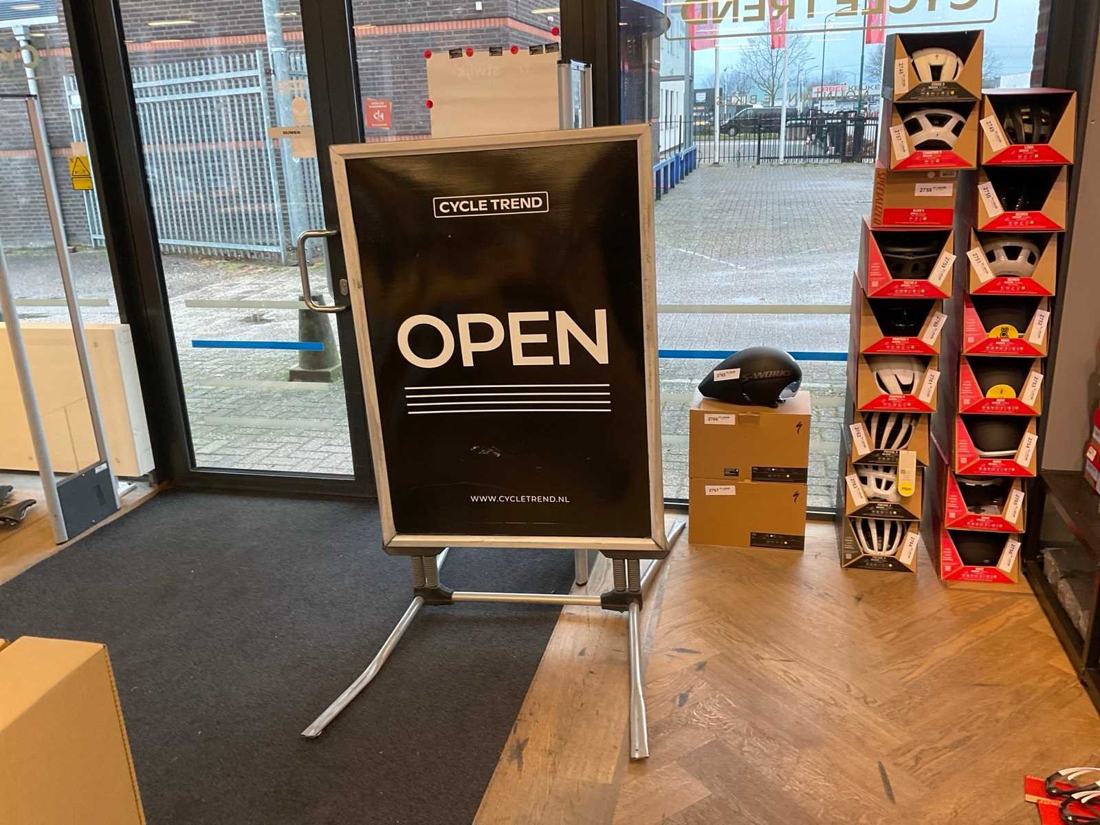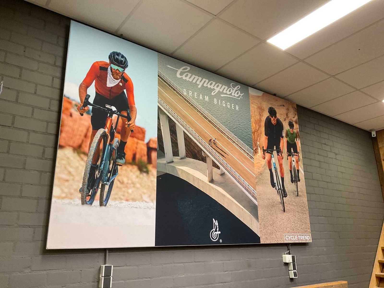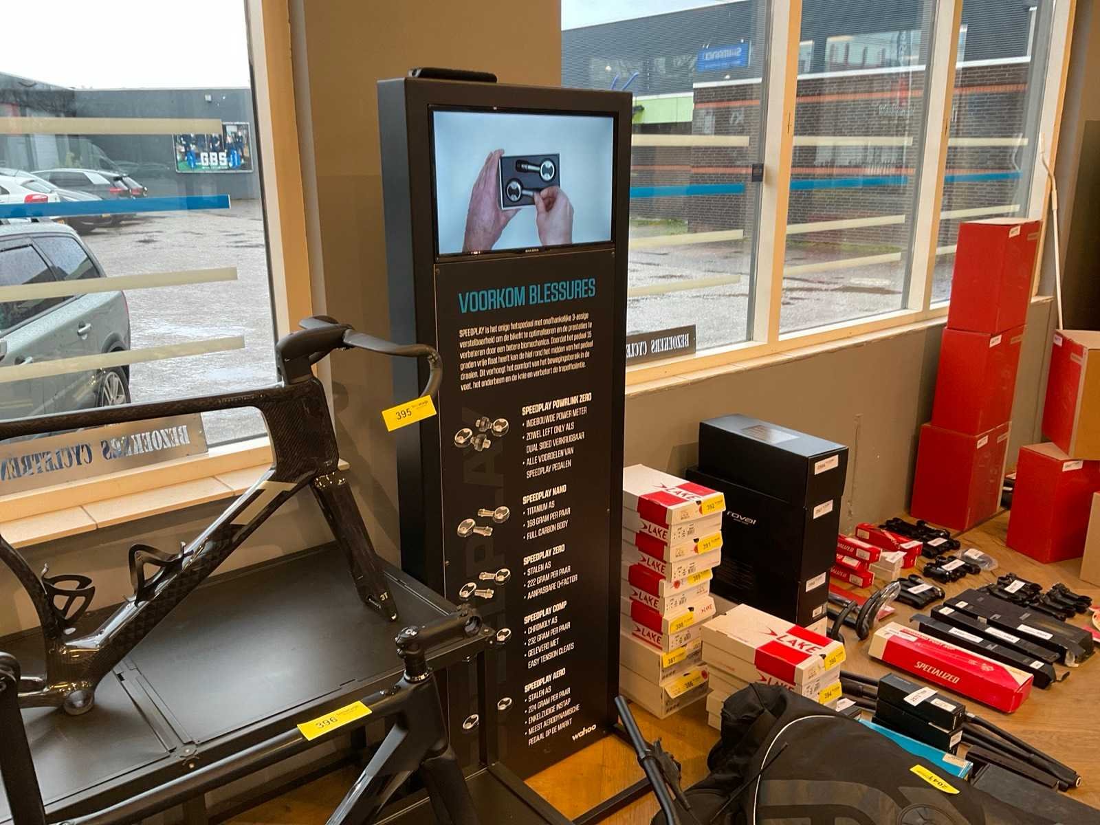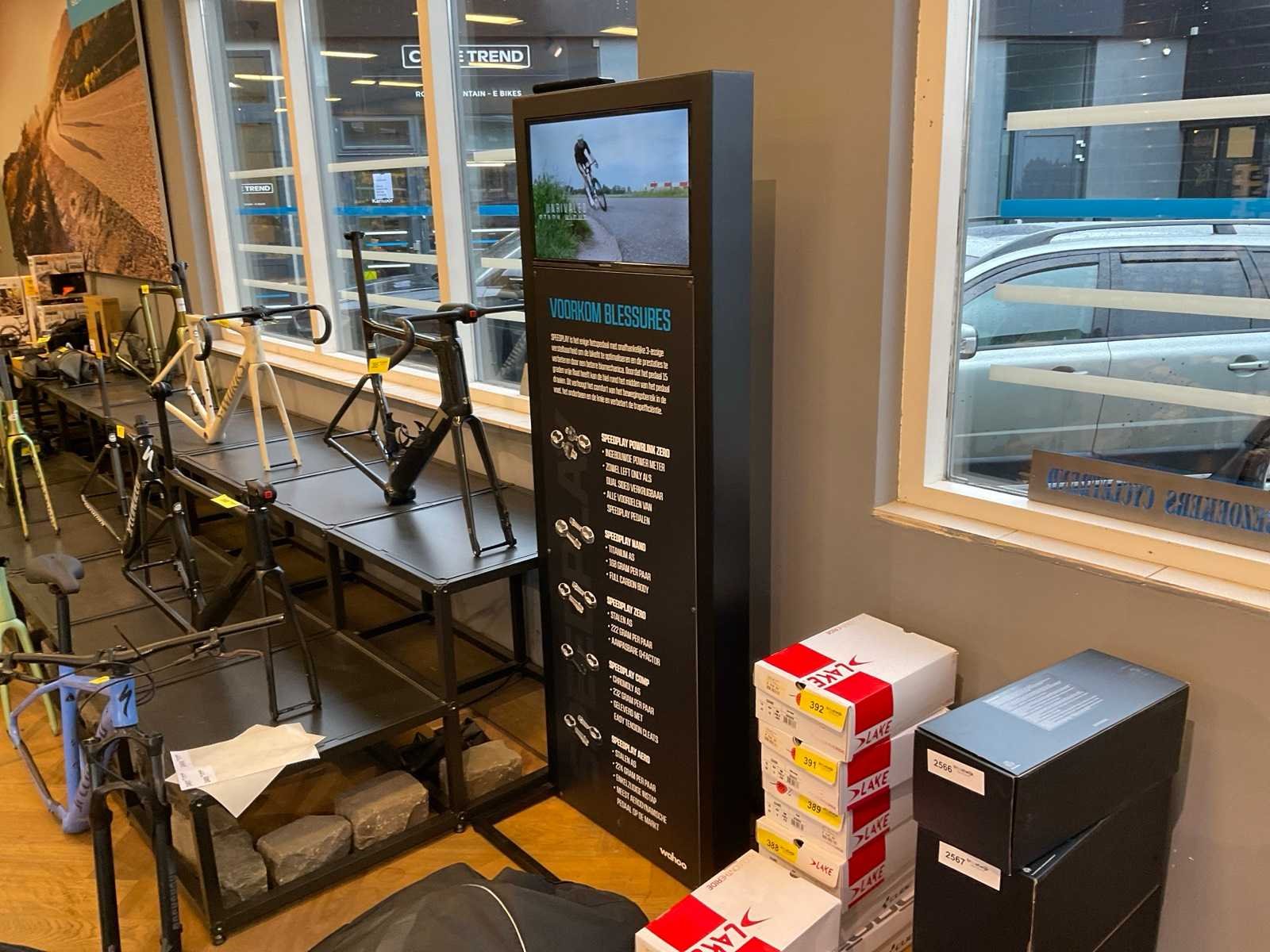 Bestaande uit: Shimano licht reclame (demonteren achter plafonddeel), Shimano wand reclame (circa 375x200 cm), Cycle trend stoepbord (circa 140x90x150 cm) en wandbord (circa 190x200 cm), Wahoo reclamezuil met monitor(circa 60x65x185 cm), Cycle trend wandreclame (circa 300x180 cm)