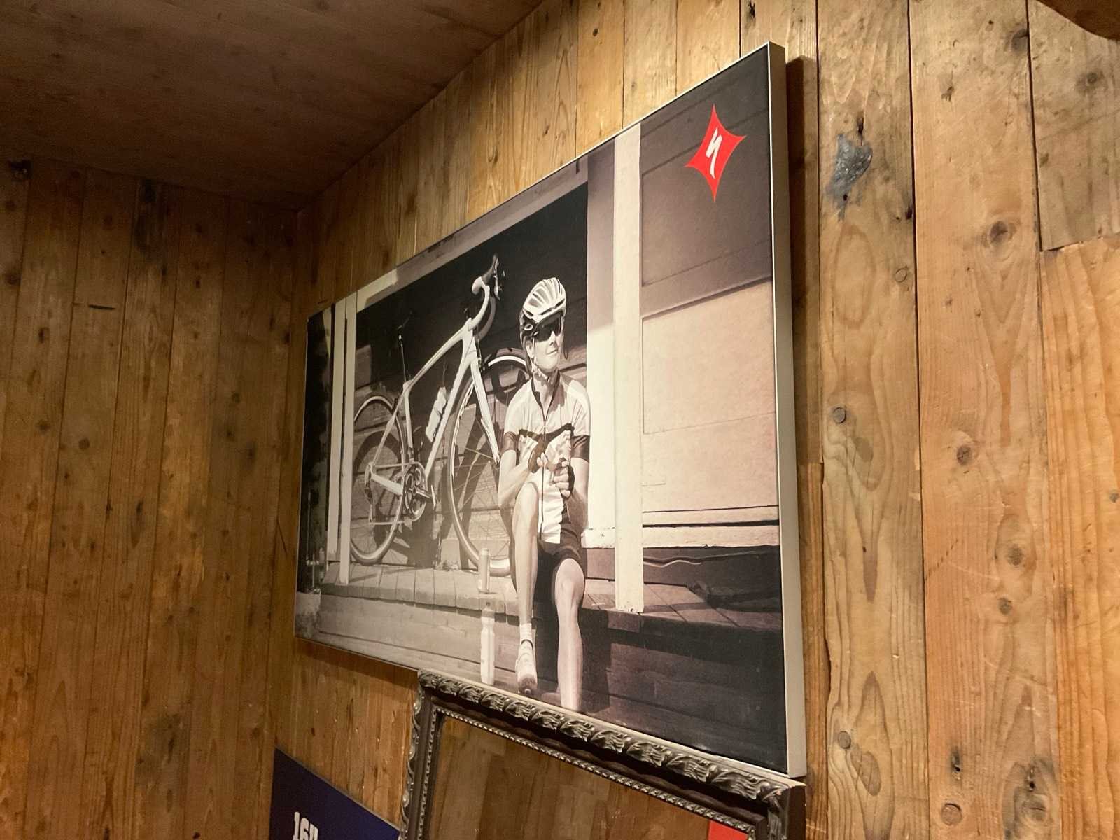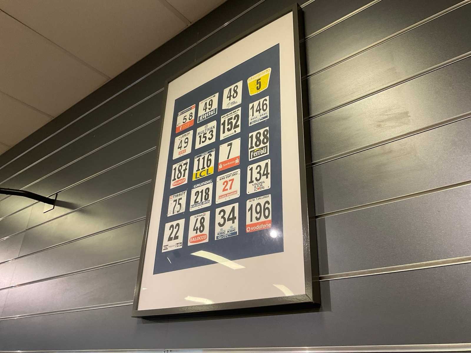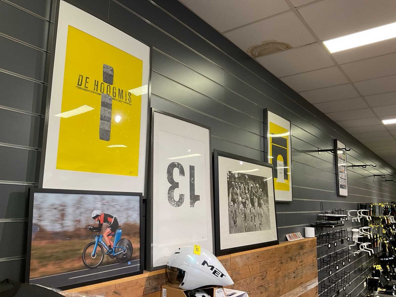 Bestaande uit diverse foto’s, posters in lijst, spiegel.