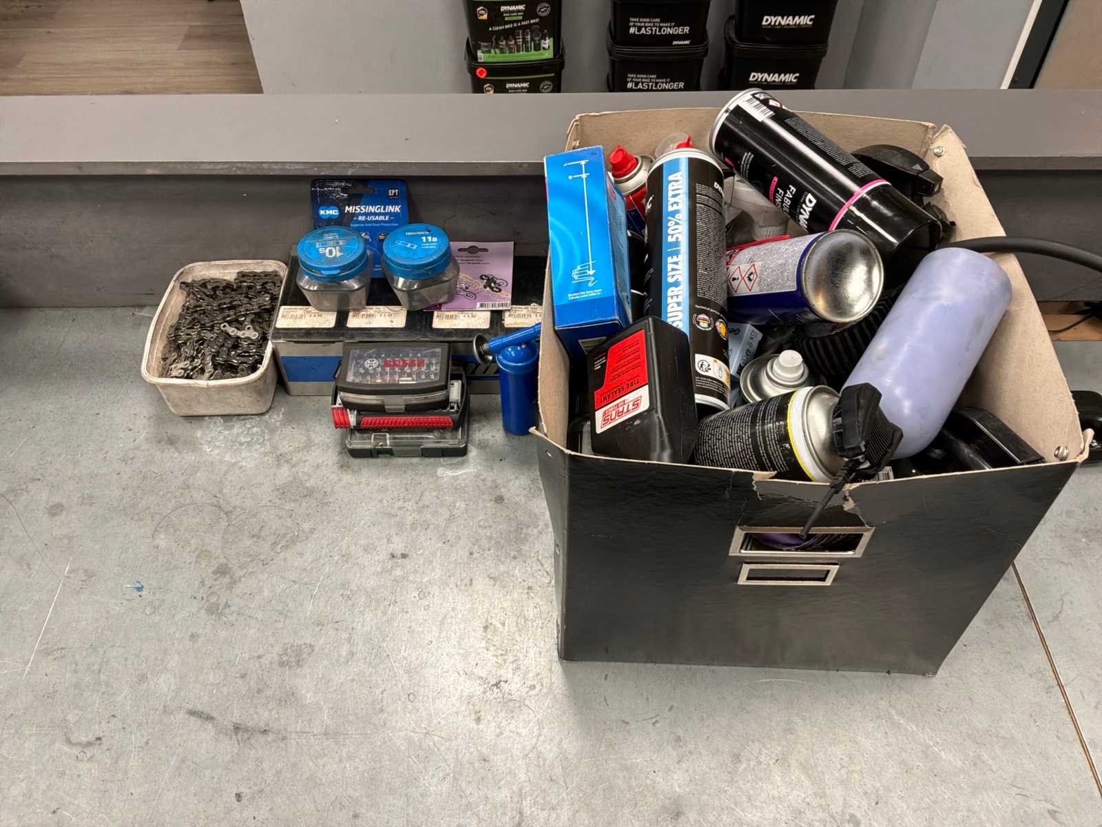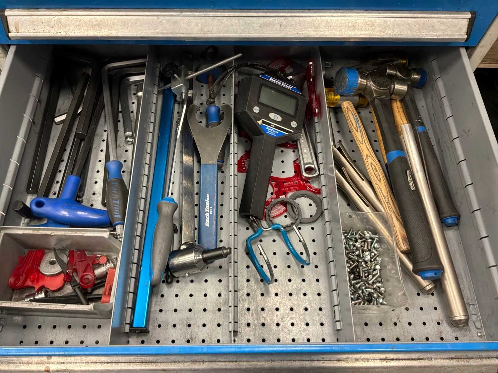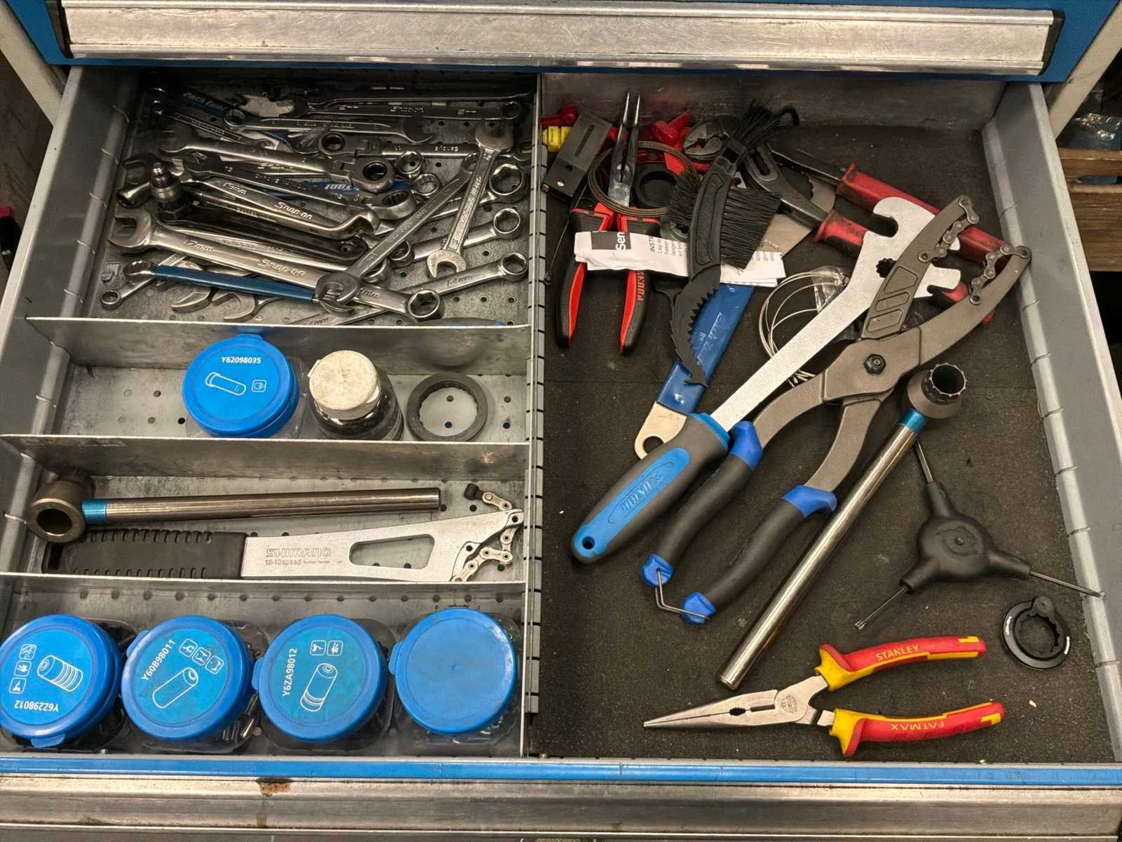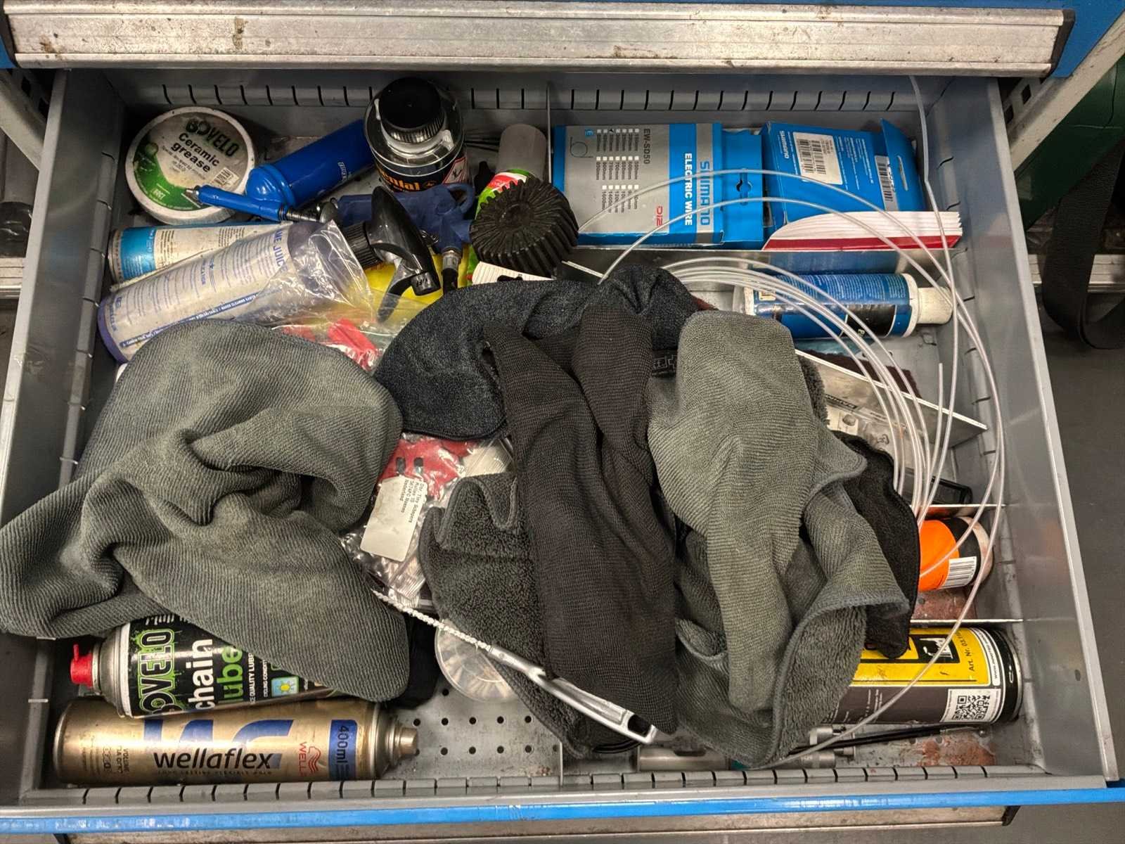 Inclusief inhoud en materiaal op de werkbank. Merk: Bott Lengte: 62cm Breedte: 75cm Hoogte: 90cm Materiaal: Metaal