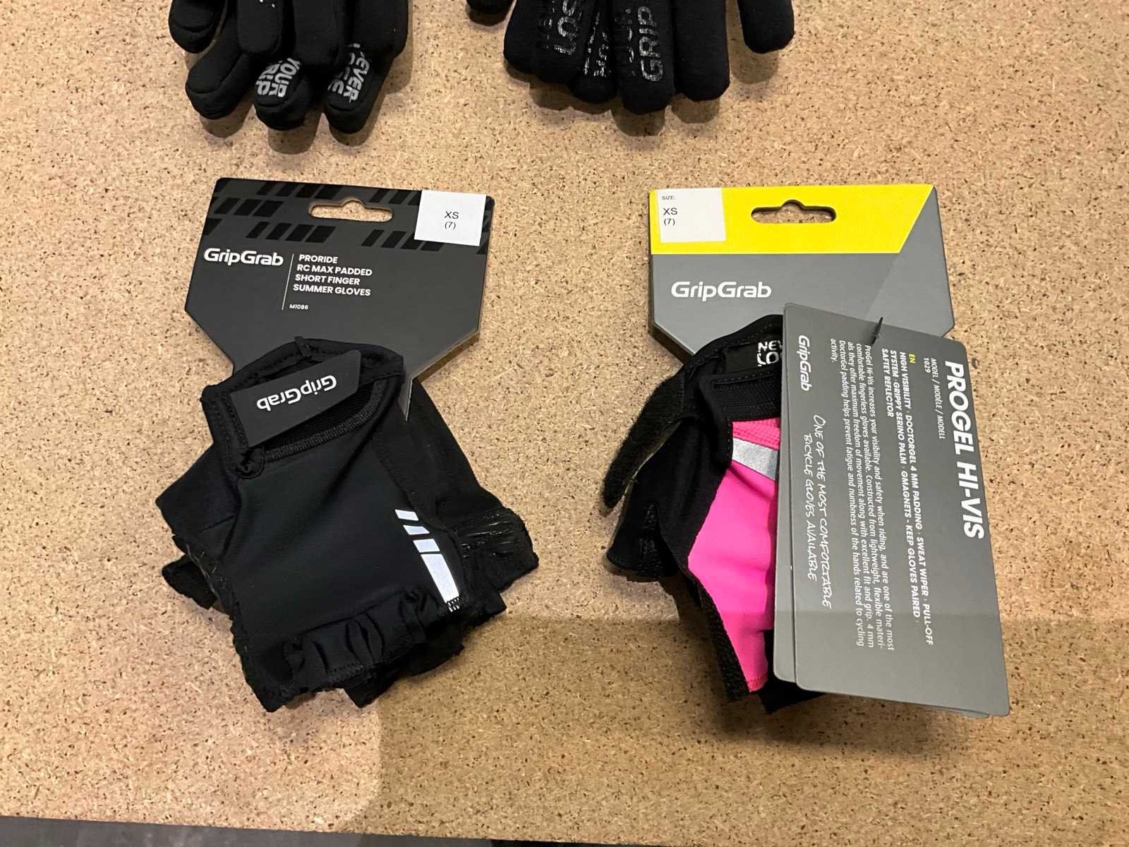 Diverse types: Ride windproof winter gloves, Progel hi-vis, Proride en waterproof knitted winter gloves Merk: GripGrab Maat: XS/S Kleur: Zwart/roze
