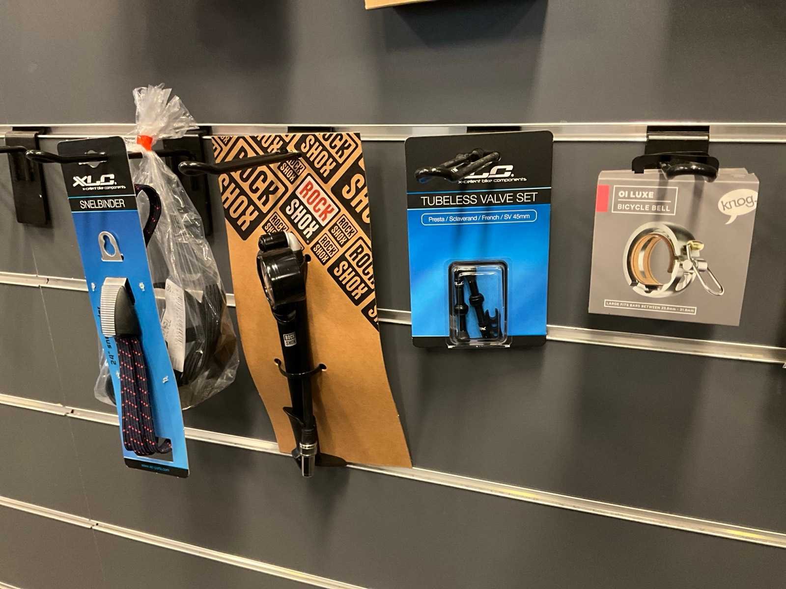 Bestaande uit: HideMyBell regular 2, Raceday 4 EVO, RockShox pomp, ventiel nippels, Basil zadeltas, etc