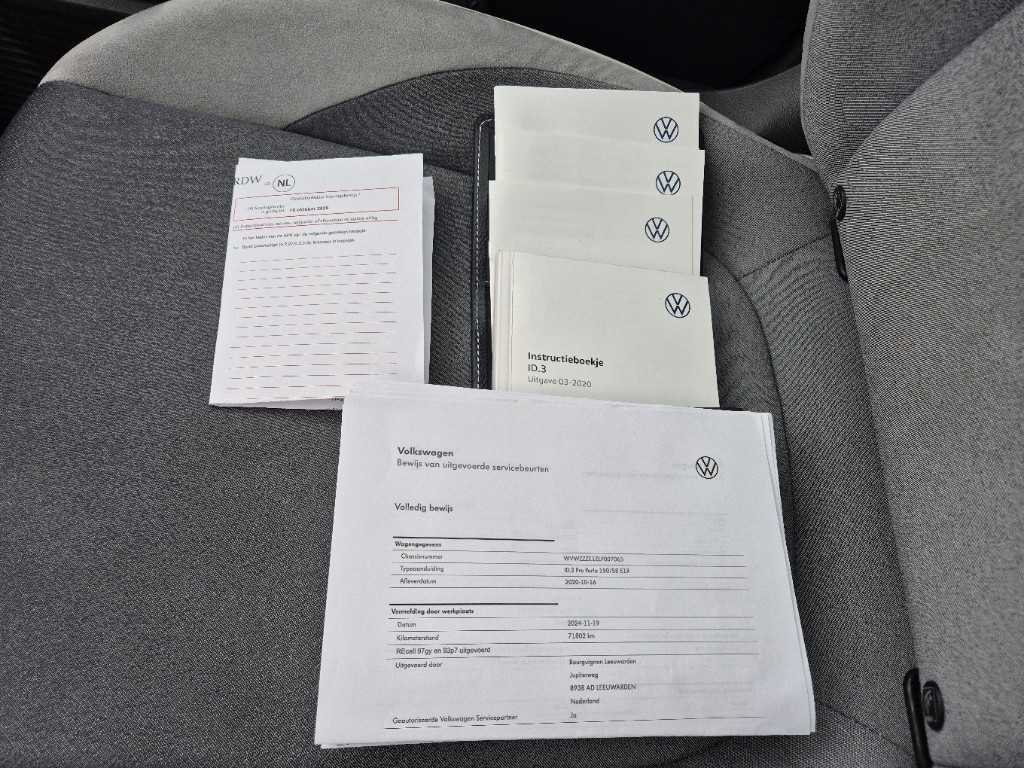 | SOH 92 % | CAMERA | STOEL + STUURVERWARMING | WARMTEPOMP | Kenteken: J-823-RP Merk: Volkswagen Model: ID.3 Type: First Plus 58 kWh Bouwjaar: 2020 Afgelezen kilometerstand: 98424km Brandstof: Elektrisch Chassisnummer: WVWZZZE1ZLP007065 NAP status: Logisch Datum eerste toelating: 2020-10-16 Datum eerste toelating (NL): 2020-10-16 APK vervaldatum: 2026-10-16 Aandrijving: Start en rijdt Aantal zitplaatsen: 5 Kleur: grijs Transmissie: Automaat Emissieklasse: Z Aantal deuren: 5 Aantal sleutels: 1 Ledig gewicht: 1694kg Carrosserie: Stationwagen Carfax Link: https://was.carfax.eu/v0/api/ccdid/5100016408/svc/201/vinreg/J823RP/checksum/eyJhbGciOiJIUzI1NiIsInR5cCI6IkpXVCJ9.eyJleHAiOjE3NzQ4OTQ4MTR9.ExmQTCsiZtBndPv39T2Ma24rsBsDW1YUQZ4Ott4BQ7g Start en rijdt: Start and drive startinformatie : Start en rijdt Self drive export possible : true