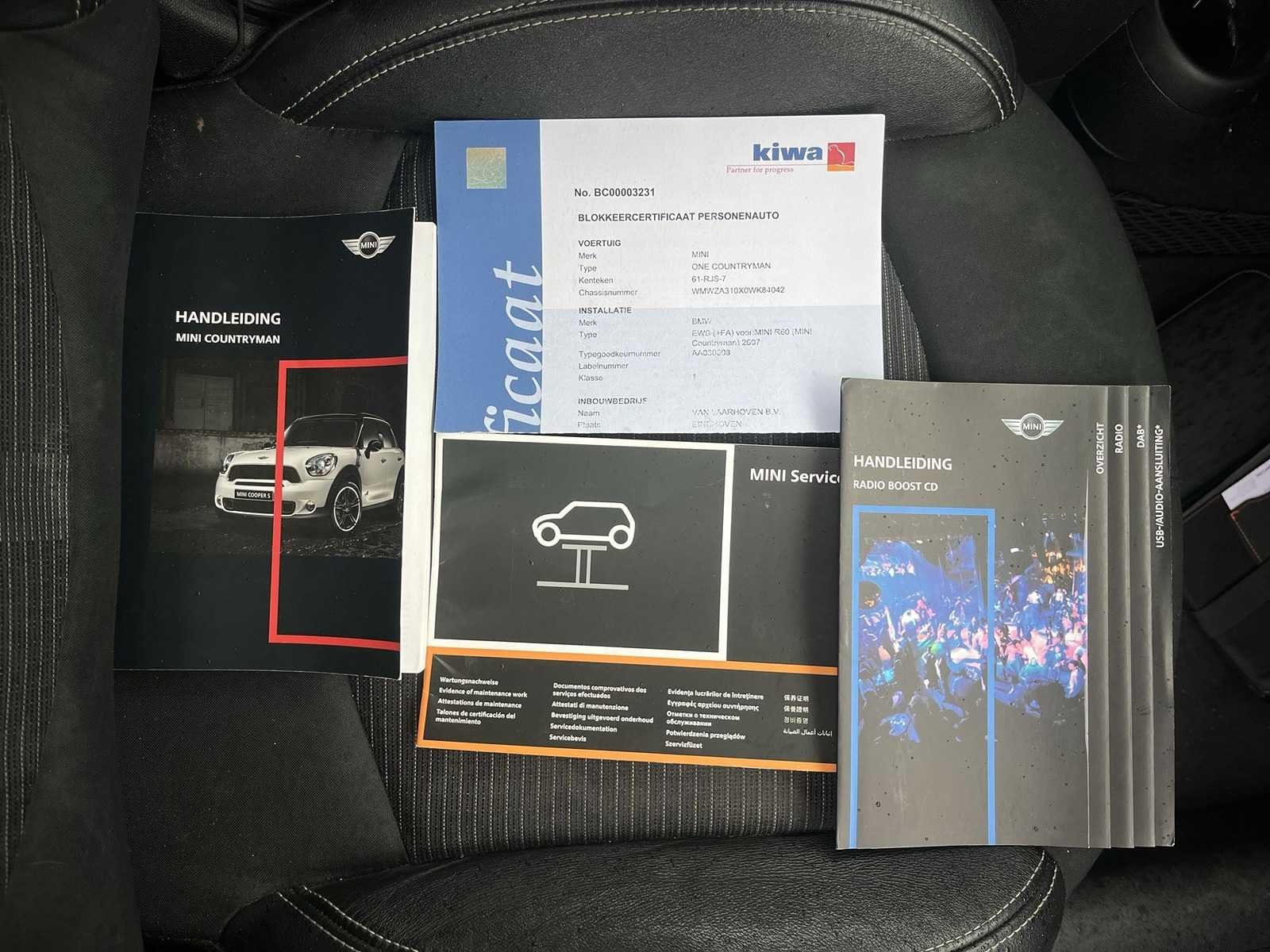 Banden 205/55 r17..v Velgen 7 j x 17 lm 1598ccm 72kw 2-lagen metallic 6-versn wisselbak Achterbank 3-pers Airbag pass deactief airco-automaat Bekleding stof/leer boordcomputer Chroomline exterieur Cockpit zwart Colour line Dak in kleur Interieur zwart Interieurlijst zwart knipperlichten wit Lichtpakket bi-ruim mistlampen Multif-stuurwiel opbergpakket Parkeerhulp a Pass stoel hoogtever Radio boost cd Rem-energie terug Spiegel/sproei verw sportstoelen sportstuur leer Stop/start-systeem Uitv-pakket chili Va 03/2011 Velgen lm zilver Wielbout borging Kenteken: 61-RJS-7 Merk: Mini Model: Mini Countryman Type: 1.6 One Chili Bouwjaar: 2011 Afgelezen kilometerstand: 211531km Cilinderinhoud: 1598cc Vermogen (kW): 72kW Brandstof: Benzine Chassisnummer: WMWZA310X0WK84042 NAP status: Logisch Datum eerste toelating: 2011-06-14 Datum eerste toelating (NL): 2011-06-14 APK vervaldatum: 2026-06-14 Vermogen (pk): 97hp Aandrijving: Start en rijdt Aantal zitplaatsen: 5 Kleur: zwart Transmissie: Handgeschakeld Emissieklasse: 5 Aantal deuren: 4 Aantal sleutels: 1 Ledig gewicht: 1240kg Bruto BPM (NL): 4942€ Aantal cilinders: 4 Carrosserie: Stationwagen Nationaliteit documenten: Nederlands Onderhoudshistorie: Aanwezig danwel digitaal Carfax Link: https://was.carfax.eu/v0/api/ccdid/5100016408/svc/201/vinreg/61RJS7/checksum/eyJhbGciOiJIUzI1NiIsInR5cCI6IkpXVCJ9.eyJleHAiOjE3NzU0NzQxMjl9.aS1Gae_h5jyA07qJXtRCt_3qn-ffhcTd7AzLsHmrzcs Start en rijdt: Start and drive startinformatie : Start en rijdt Self drive export possible : true Airconditioning: true Navigatie: false LED-koplampen: false