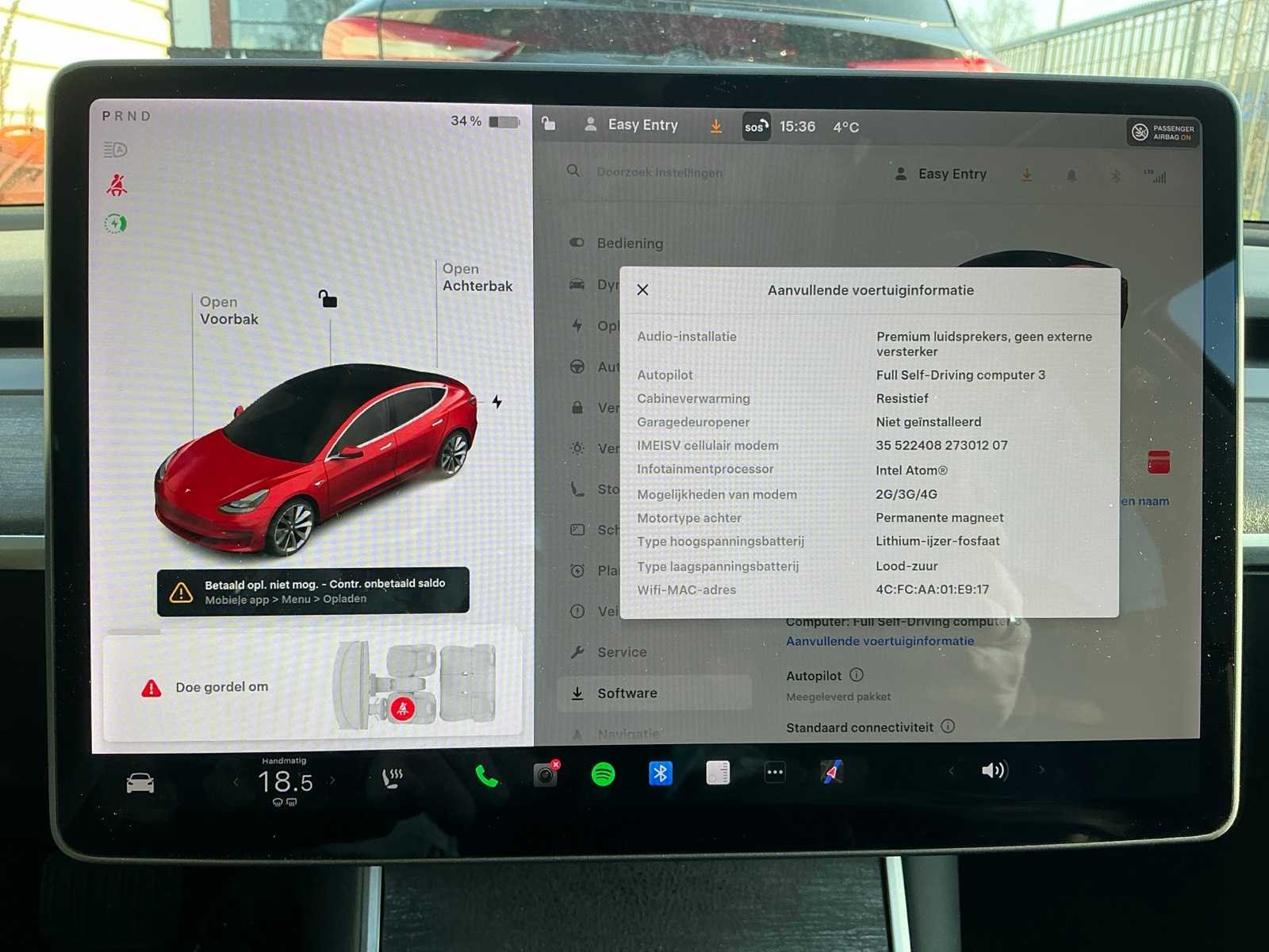 Voorzien van Autopilot, LED koplampen, grootlichtassistent, adaptieve cruise control, navigatiesysteem, klimaatregeling met twee zones, elektrisch verstelbare stoelen met memory functie, elektrisch verstelbare lendensteun voor beide stoelen, stoelverwarming voor, achteruitrijcamera, elektrisch inklapbare buitenspiegels, elektrisch verstelbare spiegels, parkeersensoren rondom Kenteken: K-621-BS Merk: Tesla Model: Model 3 Type: Standard Range Plus RWD Bouwjaar: 2020 Afgelezen kilometerstand: 237563km Brandstof: elektriciteit Chassisnummer: LRW3E7FA4LC106703 Laadvermogen: 0kg Datum eerste toelating: 2020-12-08 Datum eerste toelating (NL): 2020-12-08 APK vervaldatum: 2026-12-08 Vermogen (pk): 0hp Aantal zitplaatsen: 5 Kleur: rood Transmissie: Automaat Emissieklasse: Z Aantal deuren: 4 Aantal sleutels: 2 Ledig gewicht: 1725kg Bruto BPM (NL): 0€ Carrosserie: Sedan Nationaliteit documenten: Nederlands Carfax Link: https://was.carfax.eu/v0/api/ccdid/5100016408/svc/201/vinreg/K621BS/checksum/eyJhbGciOiJIUzI1NiIsInR5cCI6IkpXVCJ9.eyJleHAiOjE3NzY0MTMxNzN9.1aSk7G4kWTBXoN2aeZ6fUWngBZmw7VOY6NxUx6_LMIA Self drive export possible : true Airconditioning: true Navigatie: true LED-koplampen: true Leder bekleed: true