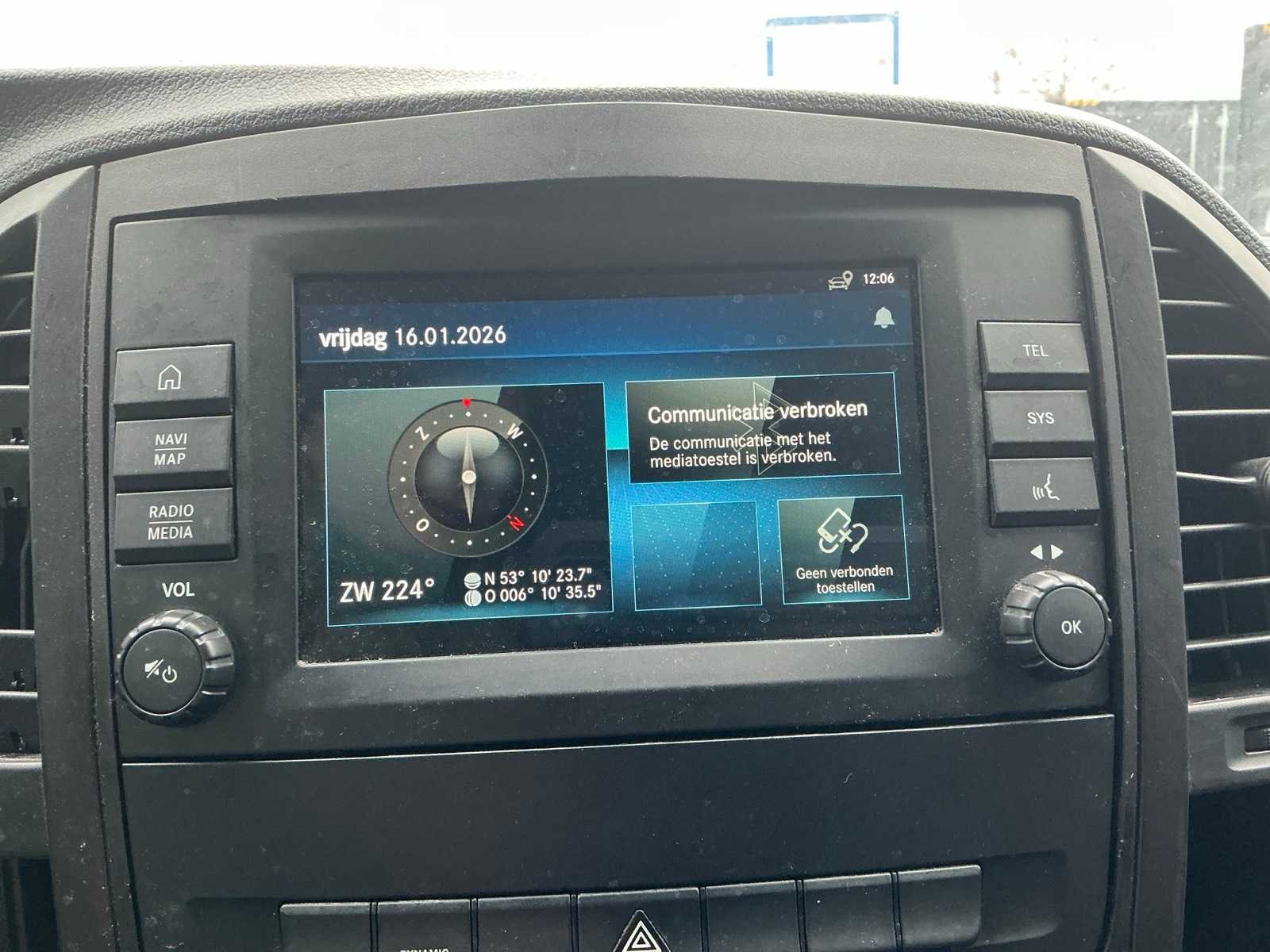 Voorzien van 41 kWh accupakket, TEMPMATIC halfautomatische airconditioning, stoelverwarming voor bestuurder, elektrisch verstelbare lendensteun, schakelflippers voor regeneratief remmen (recuperatie), radio navigatiesysteem met Bluetooth connectie: Apple Carplay + Android Auto, achteruitrijcamera, elektrisch bedienbare ramen, elektrisch verstelbare buitenspiegels, all-season banden Kenteken: VHL-20-R Merk: Mercedes-Benz Type: 41 kWh Model: eVito Bouwjaar: 2020 Chassisnummer: W1V44760313795497 Afgelezen kilometerstand: 60067km Brandstof: elektriciteit Datum eerste toelating: 2020-11-19 Datum eerste toelating (NL): 2020-11-19 APK vervaldatum: 2026-11-19 Transmissie: Automaat Aantal zitplaatsen: 3 Kleur: geel Nationaliteit documenten: Nederlands Bruto BPM (NL): 0 Aantal deuren: 6 Ledig gewicht: 2136kg Laadvermogen: 1064kg Vermogen (pk): 0 Carrosserie: Bestelwagen Emissieklasse: Z Kentekenpapieren compleet?: true