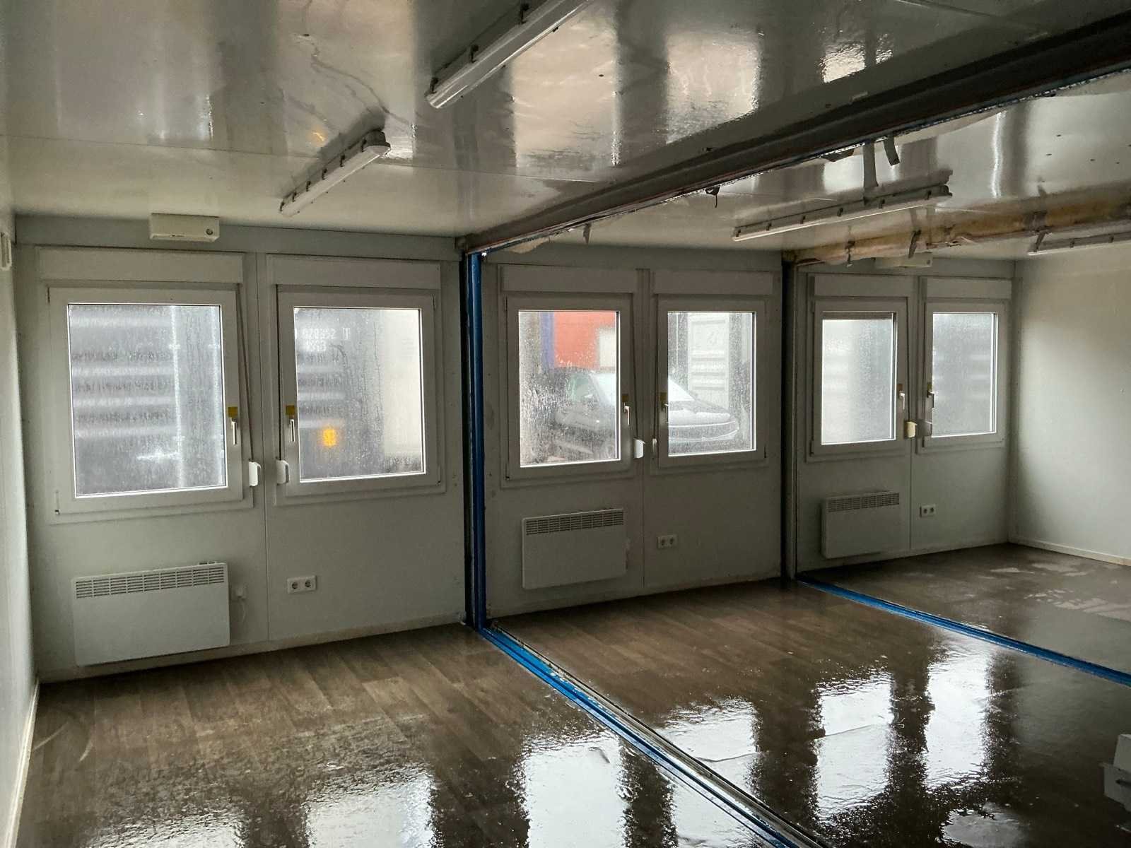 Geschakeld, voorzien van stopcontacten, verlichting, draai-/kiepramen met rolluiken, elektrische verwarming, groepenkast, hijsogen, lepelgaten Merk: CTX Containex Type: 20ft Schakelunit: true