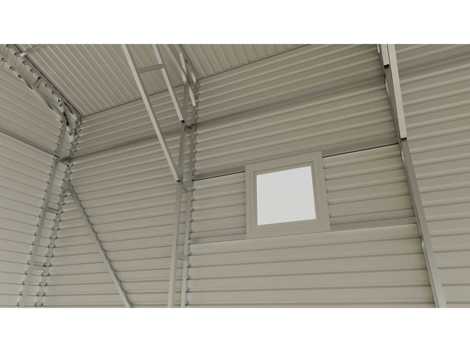 Voorzien van 50x50x1,5 mm en 40x40x1,2 mm stalen buizenframe, 4 zijramen (82x70 cm), automatische roldeur (stroomvoorziening 230 Volt), zijdeur. Wandhoogte 417 cm. Afmetingen binnenzijde loods (LxBxH): 1993x1255x635 cm. Kleuren plaatmateriaal: RAL 9001 + RAL 7016. Merk: Field Industries Materiaal: Metaal Type: 4366 Bouwjaar: 2025 Totaal oppervlakte: 260m² Totale afmeting L: 19930mm Totale afmeting Breedte: 13030mm Totale afmeting Hoogte: 6350mm Eigen gewicht: 4800kg