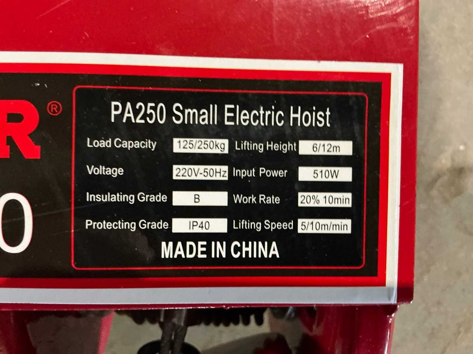 Capaciteit.: 250kg Hijshoogte: 12m Afstandsbediening: true Aansluiting: 230V