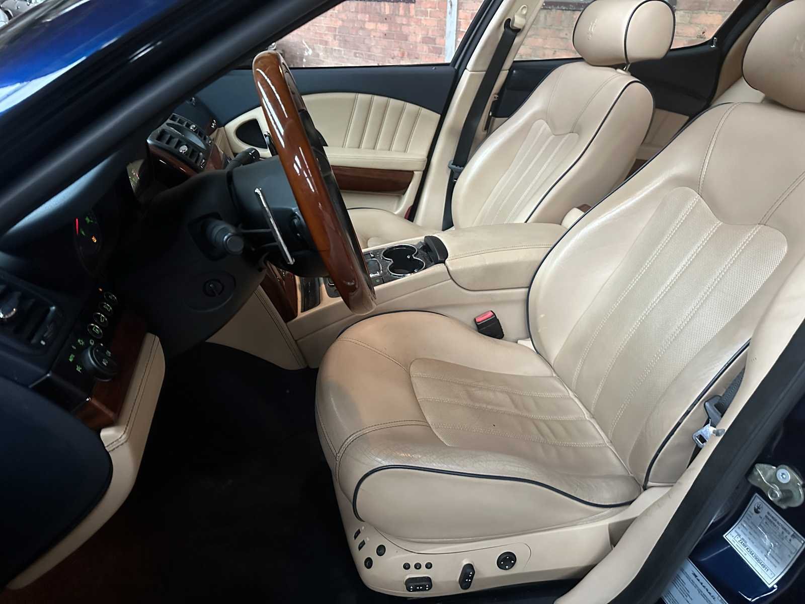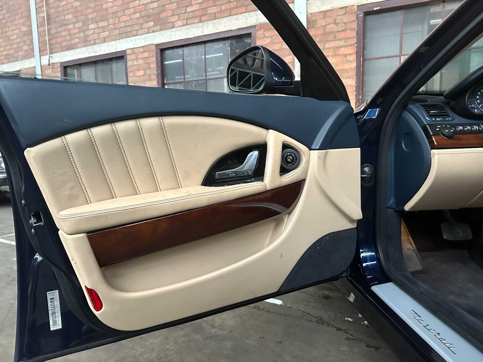 Merk: Maserati Model: Quattroporte Type: 4.2 V8 Brandstof: Benzine Afgelezen mijlenstand: 110379mi Chassisnummer: ZAMFK39A390044911 Datum eerste toelating: 2009-01-01 Vermogen (pk): 405hp Aandrijving: Achterwielaandrijving Aantal zitplaatsen: 5 Kleur: blauw Transmissie: Automaat Stuurwiel: Links gestuurd Aantal deuren: 5 Aantal cilinders: 8 Carrosserie: Sedan Nationaliteit documenten: USA (clean) title, invoerrechten en BTW zijn betaald. Onderhoudshistorie: ja gedeeltelijk
