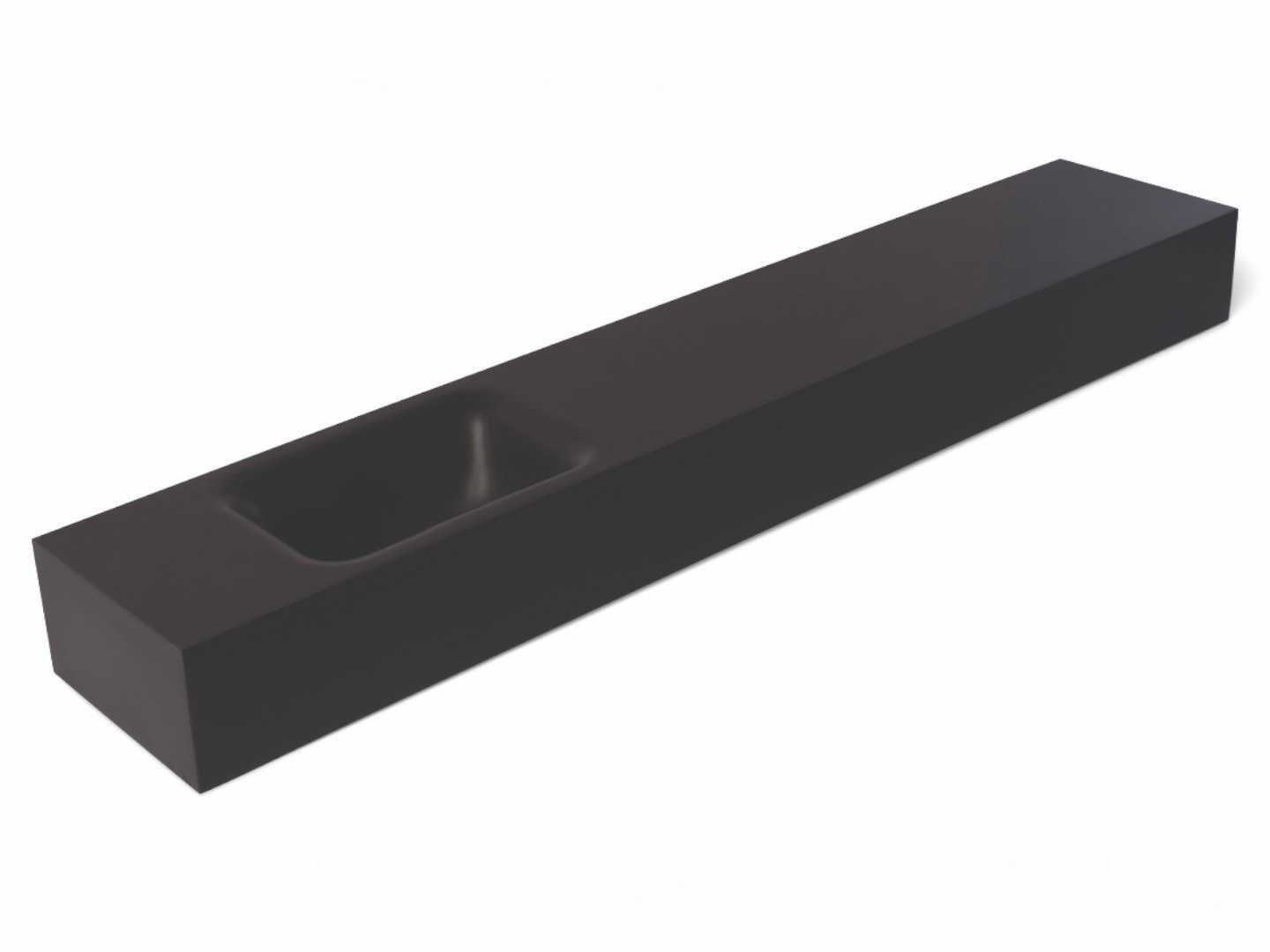 Ongebruikt in doos; Inkortbaar; Met geintegreerde wasbak links; Zonder kraangat; Met 2 ophangbeugels (rechterzijde en achterkant open) Merk: Luca sanitair Product type: LUVA1338A Kleur: Antraciet mat Lengte: 22cm Breedte: 120cm Hoogte: 12cm Materiaal: Solid surface