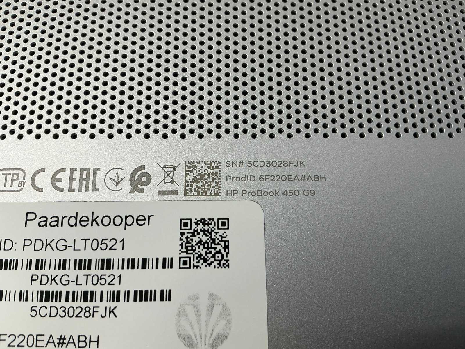 Merk: HP Type: HP ProBook 450 15.6 inch G9 Notebook PC Serienummer: 5CD3028FJK Processor type: 12th Gen Intel(R) Core(TM) i5-1235U,x86_64 @ 4.4GHz, logical CPUs: 20, Speed: 4400MHz RAM Geheugen Type: 16GB Type datadrager: SSD/NVME 512.1GB