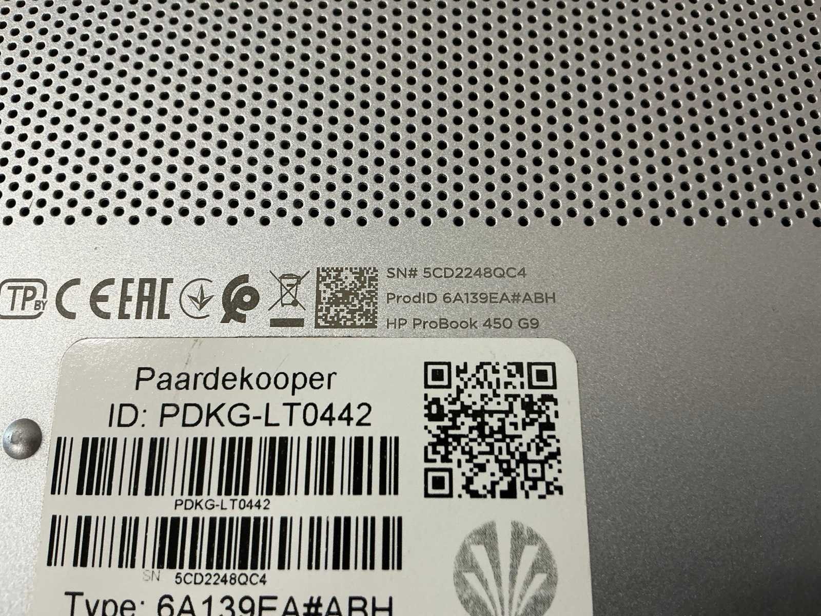 Merk: HP Type: HP ProBook 450 15.6 inch G9 Notebook PC Serienummer: 5CD2248QC4 Processor type: 12th Gen Intel(R) Core(TM) i5-1235U,x86_64 @ 4.4GHz, logical CPUs: 20, Speed: 4400MHz RAM Geheugen Type: 8GB Type datadrager: SSD/NVME 256.1GB