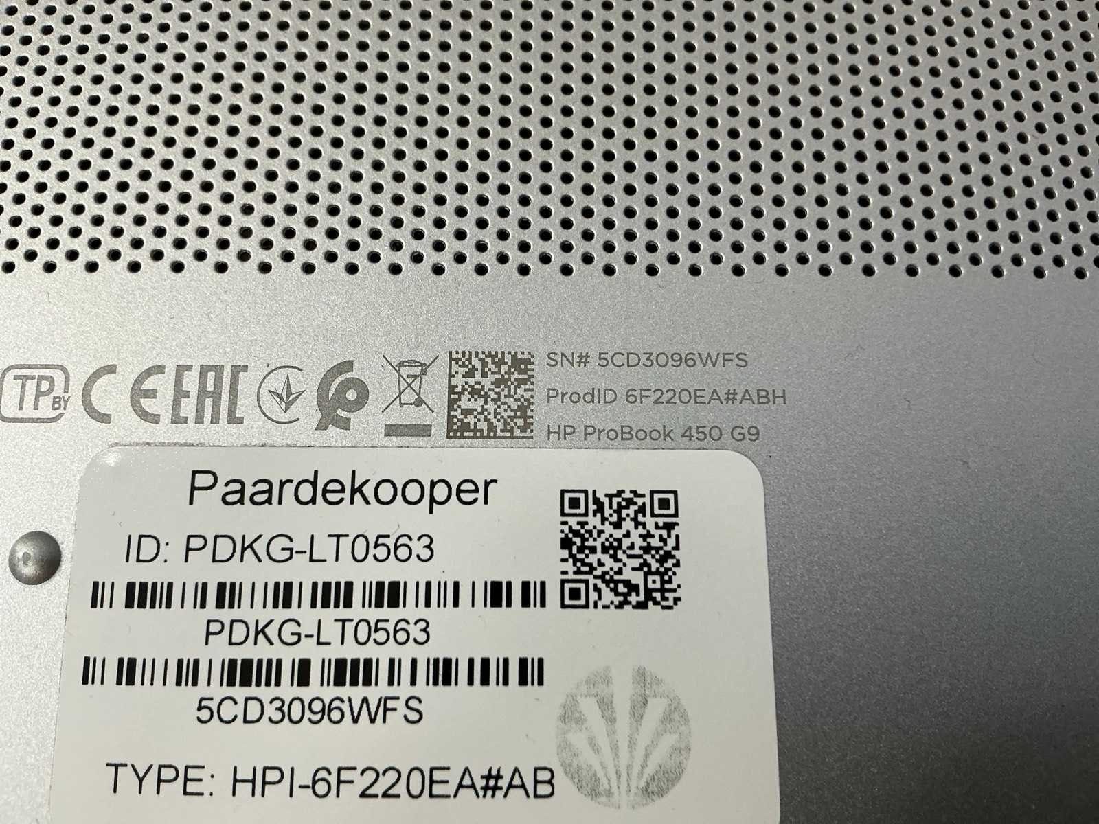 Merk: HP Type: HP ProBook 450 15.6 inch G9 Notebook PC Serienummer: 5CD3096WFS Processor type: 12th Gen Intel(R) Core(TM) i5-1235U,x86_64 @ 4.4GHz, logical CPUs: 20, Speed: 4400MHz RAM Geheugen Type: 16GB Type datadrager: SSD/NVME 512.1GB