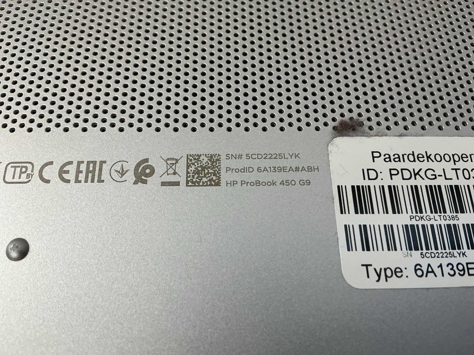 Merk: HP Type: HP ProBook 450 15.6 inch G9 Notebook PC Serienummer: 5CD2225LYK Processor type: 12th Gen Intel(R) Core(TM) i5-1235U,x86_64 @ 4.4GHz, logical CPUs: 20, Speed: 4400MHz RAM Geheugen Type: 8GB Type datadrager: SSD/NVME 256.1GB