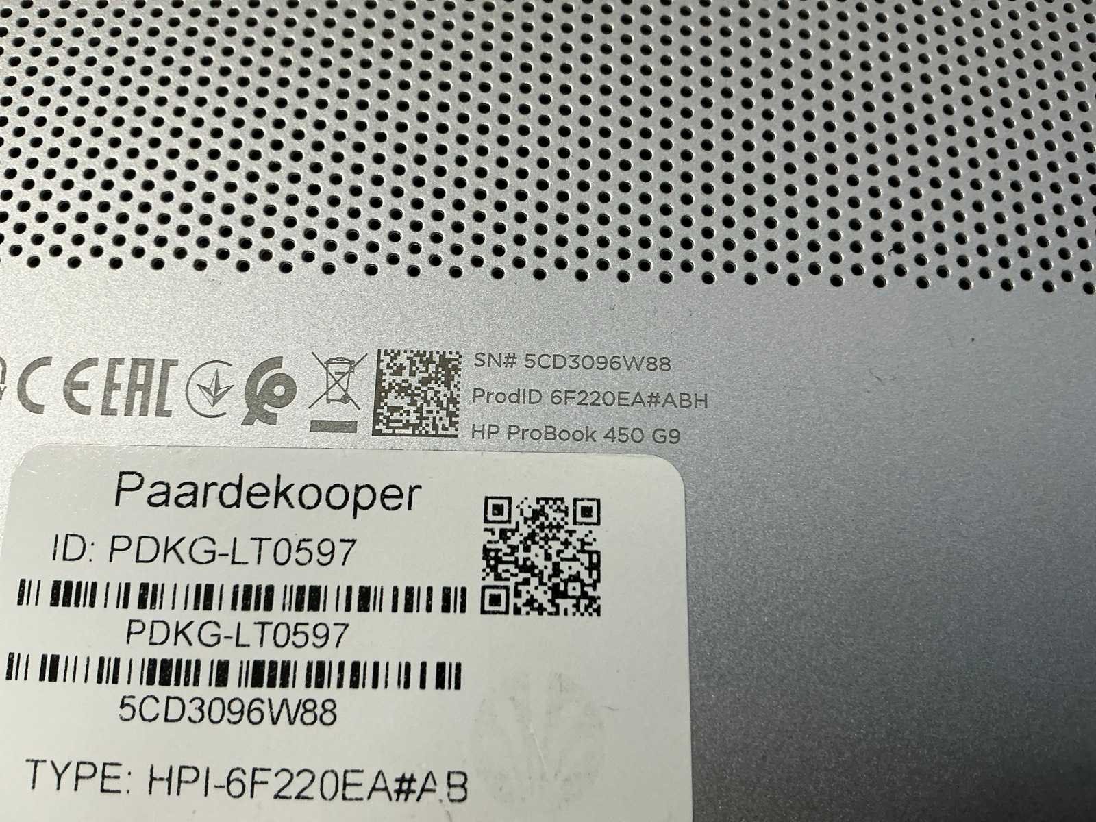 Merk: HP Type: HP ProBook 450 15.6 inch G9 Notebook PC Serienummer: 5CD3096W88 Processor type: 12th Gen Intel(R) Core(TM) i5-1235U,x86_64 @ 4.4GHz, logical CPUs: 20, Speed: 4400MHz RAM Geheugen Type: 16GB Type datadrager: SSD/NVME 512.1GB