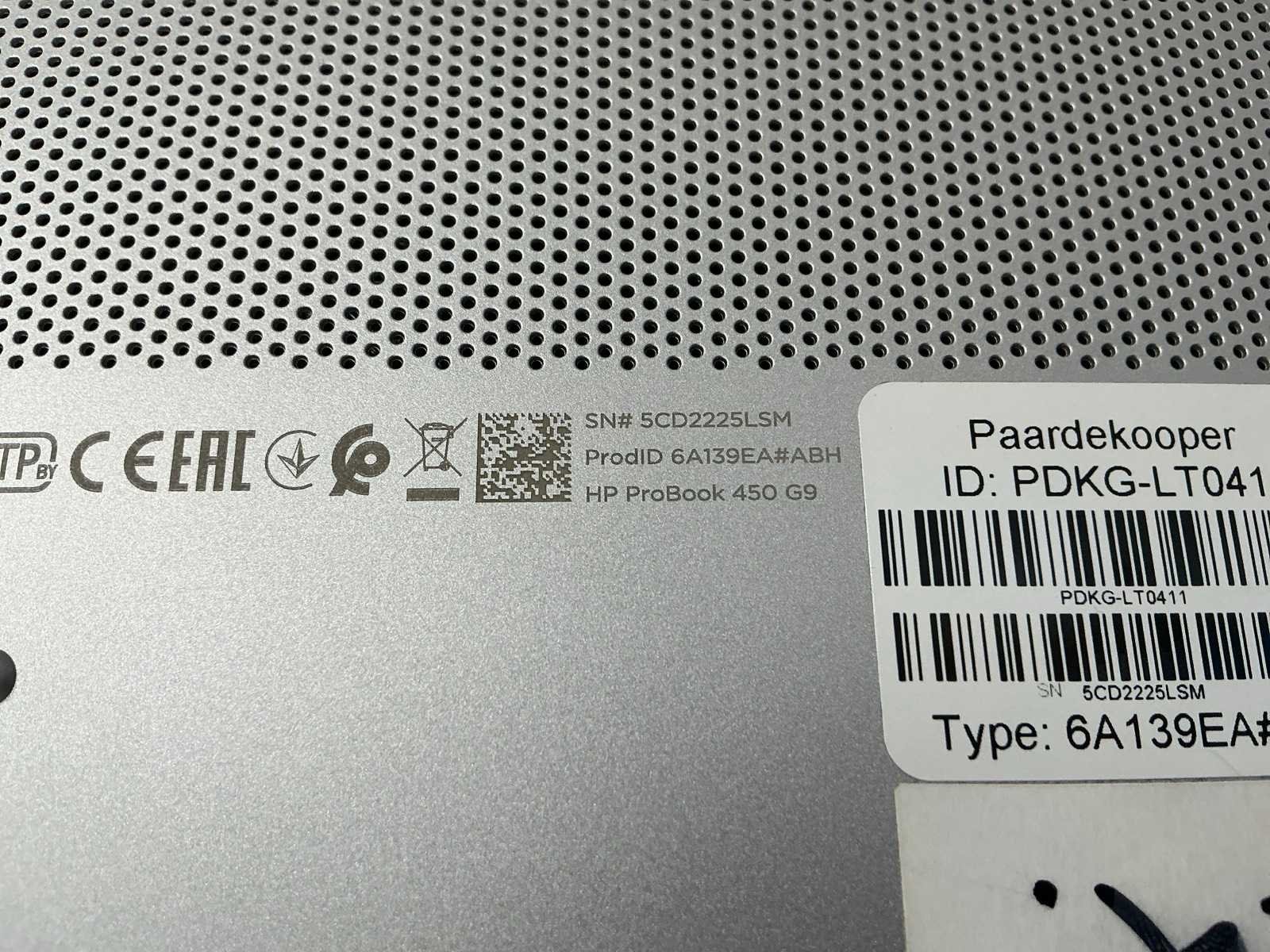 Merk: HP Type: HP ProBook 450 15.6 inch G9 Notebook PC Serienummer: 5CD2225LSM Processor type: 12th Gen Intel(R) Core(TM) i5-1235U,x86_64 @ 4.4GHz, logical CPUs: 20, Speed: 4400MHz RAM Geheugen Type: 8GB Type datadrager: SSD/NVME 256.1GB
