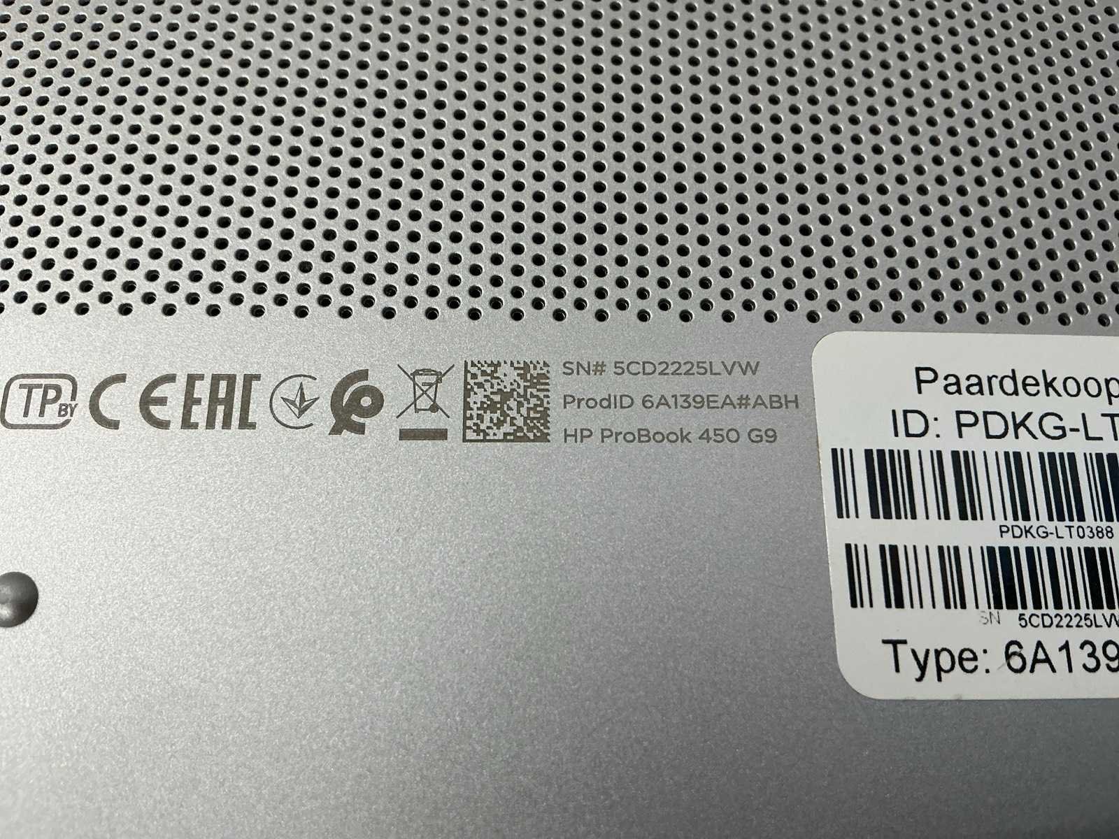 Merk: HP Type: HP ProBook 450 15.6 inch G9 Notebook PC Serienummer: 5CD2225LVW Processor type: 12th Gen Intel(R) Core(TM) i5-1235U,x86_64 @ 4.4GHz, logical CPUs: 20, Speed: 4400MHz RAM Geheugen Type: 8GB Type datadrager: SSD/NVME 256.1GB