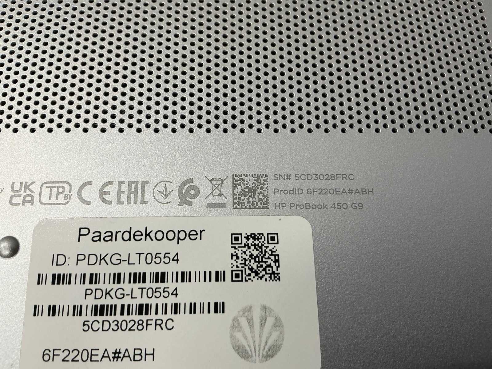 Merk: HP Type: HP ProBook 450 15.6 inch G9 Notebook PC Serienummer: 5CD3028FRC Processor type: 12th Gen Intel(R) Core(TM) i5-1235U,x86_64 @ 4.4GHz, logical CPUs: 20, Speed: 4400MHz RAM Geheugen Type: 16GB Type datadrager: SSD/NVME 512.1GB