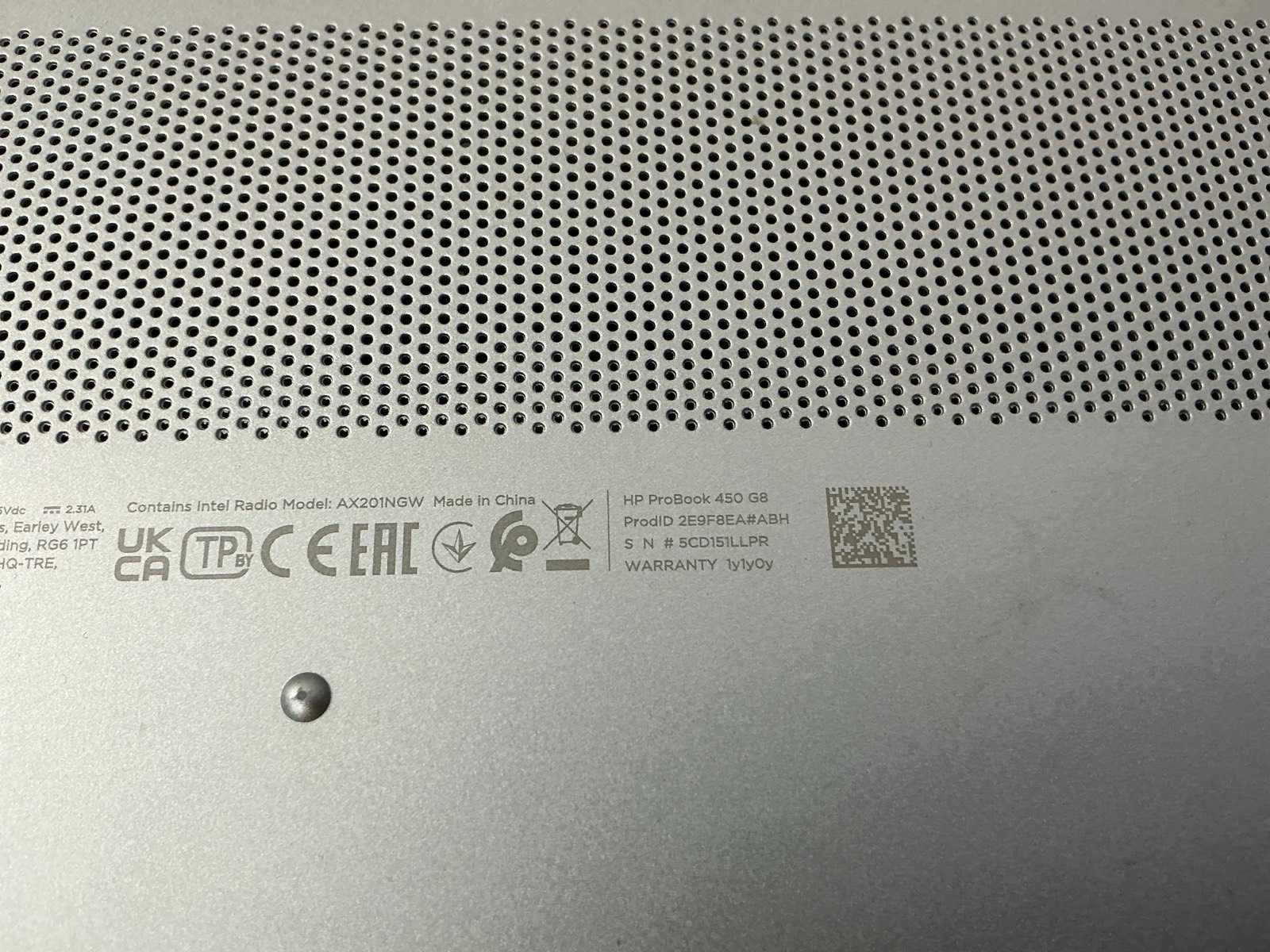 Merk: HP Type: HP ProBook 450 G8 Notebook PC Serienummer: 5CD151LLPR Processor type: 11th Gen Intel(R) Core(TM) i5-1135G7 @ 2.40GHz,x86_64 @ 4.2GHz, logical CPUs: 8, Speed: 4200MHz RAM Geheugen Type: 24GB Type datadrager: SSD/NVME 256.1GB