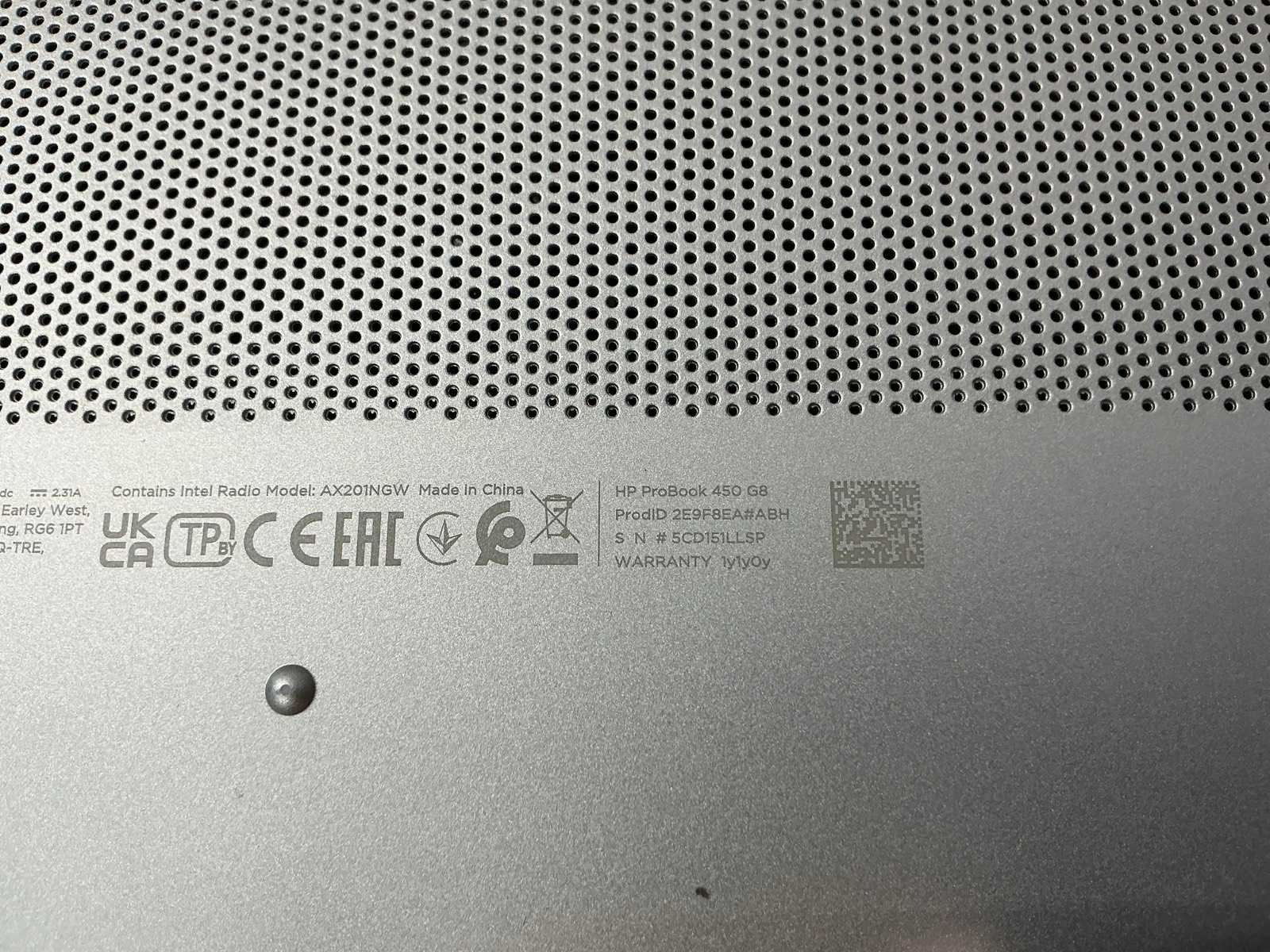 Merk: HP Type: HP ProBook 450 G8 Notebook PC Serienummer: 5CD151LLSP Processor type: 11th Gen Intel(R) Core(TM) i5-1135G7 @ 2.40GHz,x86_64 @ 4.2GHz, logical CPUs: 8, Speed: 4200MHz RAM Geheugen Type: 8GB Type datadrager: SSD/NVME 256.1GB