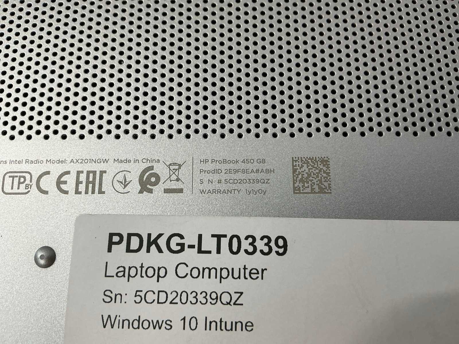 Merk: HP Type: HP ProBook 450 G8 Notebook PC Serienummer: 5CD20339QZ Processor type: 11th Gen Intel(R) Core(TM) i5-1135G7 @ 2.40GHz,x86_64 @ 4.2GHz, logical CPUs: 8, Speed: 4200MHz RAM Geheugen Type: 8GB Type datadrager: SSD/NVME 256.1GB