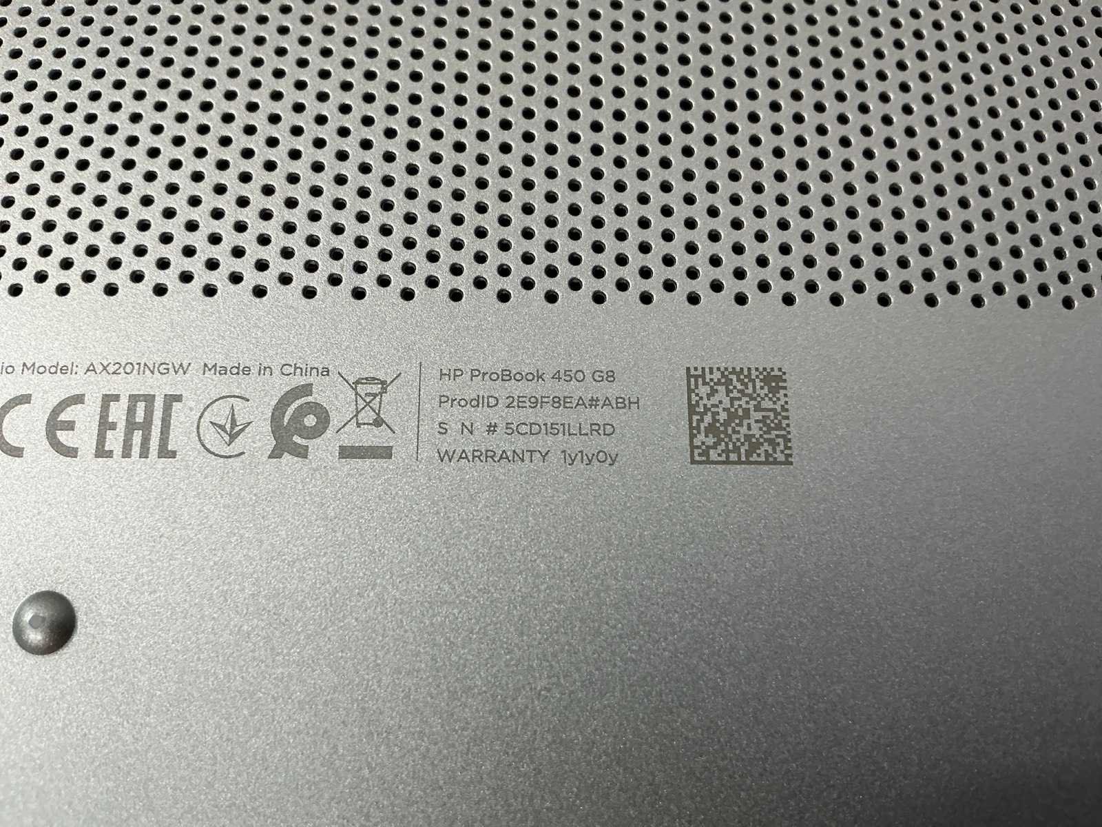 Merk: HP Type: HP ProBook 450 G8 Notebook PC Serienummer: 5CD151LLRD Processor type: 11th Gen Intel(R) Core(TM) i5-1135G7 @ 2.40GHz,x86_64 @ 4.2GHz, logical CPUs: 8, Speed: 4200MHz RAM Geheugen Type: 8GB Type datadrager: SSD/NVME 256.1GB