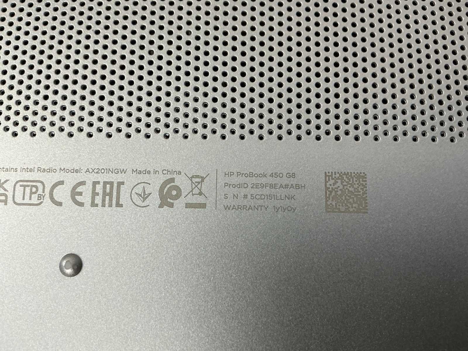 Merk: HP Type: HP ProBook 450 G8 Notebook PC Serienummer: 5CD151LLNK Processor type: 11th Gen Intel(R) Core(TM) i5-1135G7 @ 2.40GHz,x86_64 @ 4.2GHz, logical CPUs: 8, Speed: 4200MHz RAM Geheugen Type: 16GB Type datadrager: SSD/NVME 256.1GB